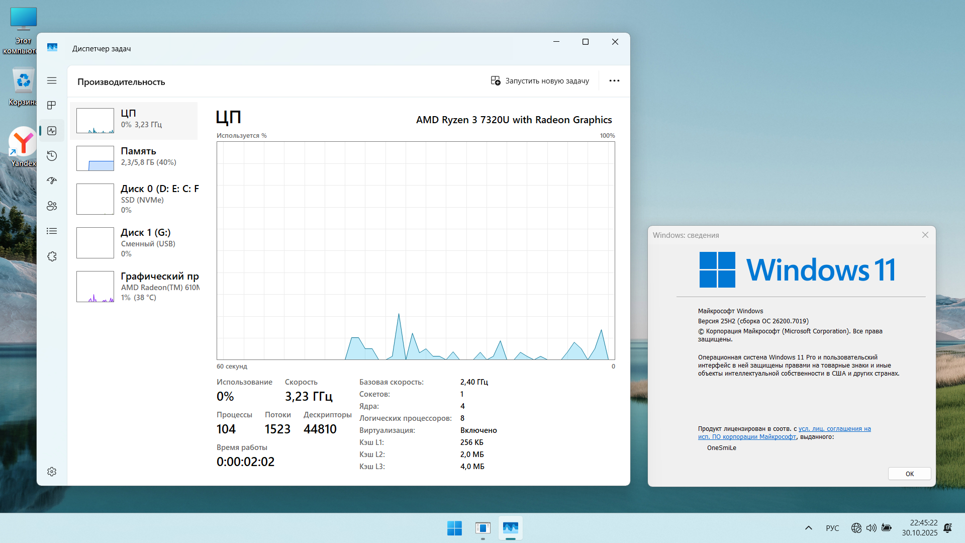 Windows 11 Pro 25H2 build 26200.7019 by OneSmiLe