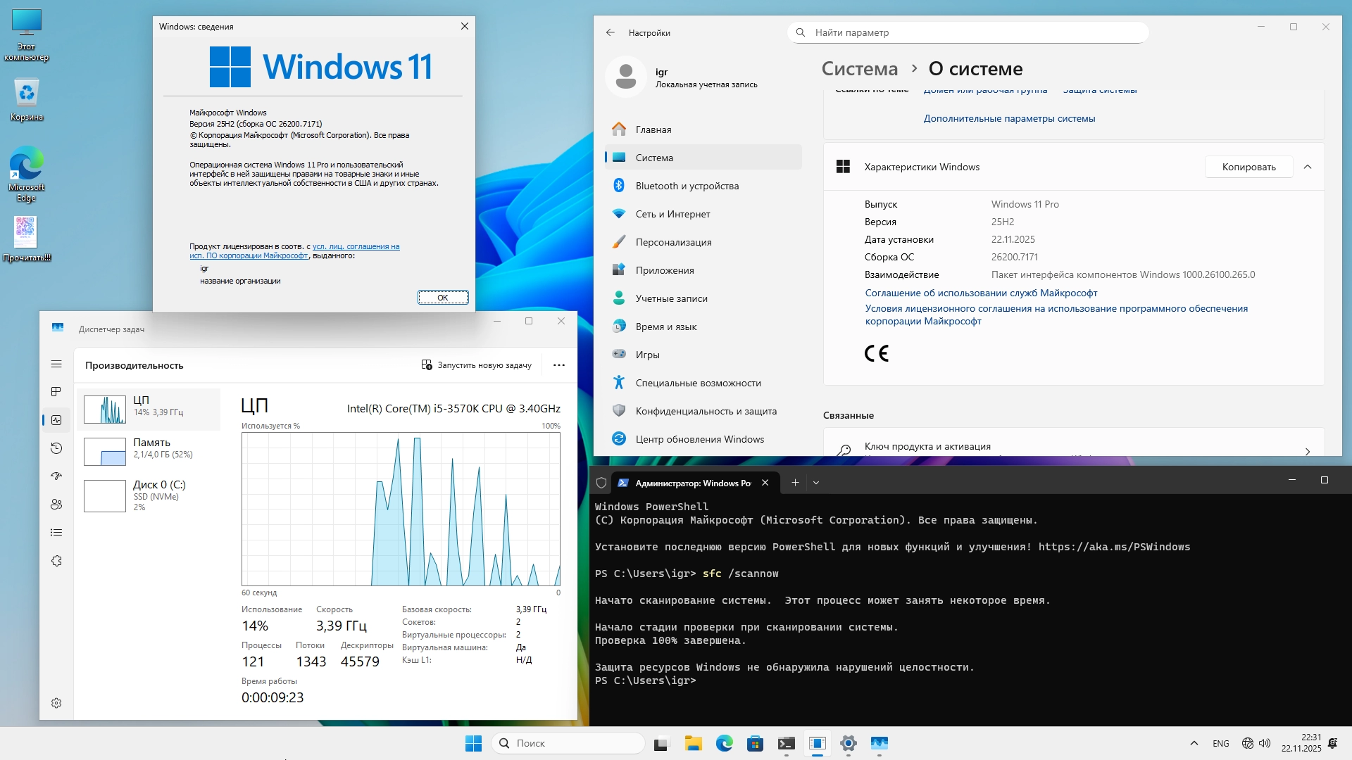 Загруженный торрент "Windows 11 Pro 25H2 Build 26200.7171" с исправлениями и отключеными задачами.