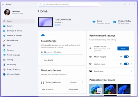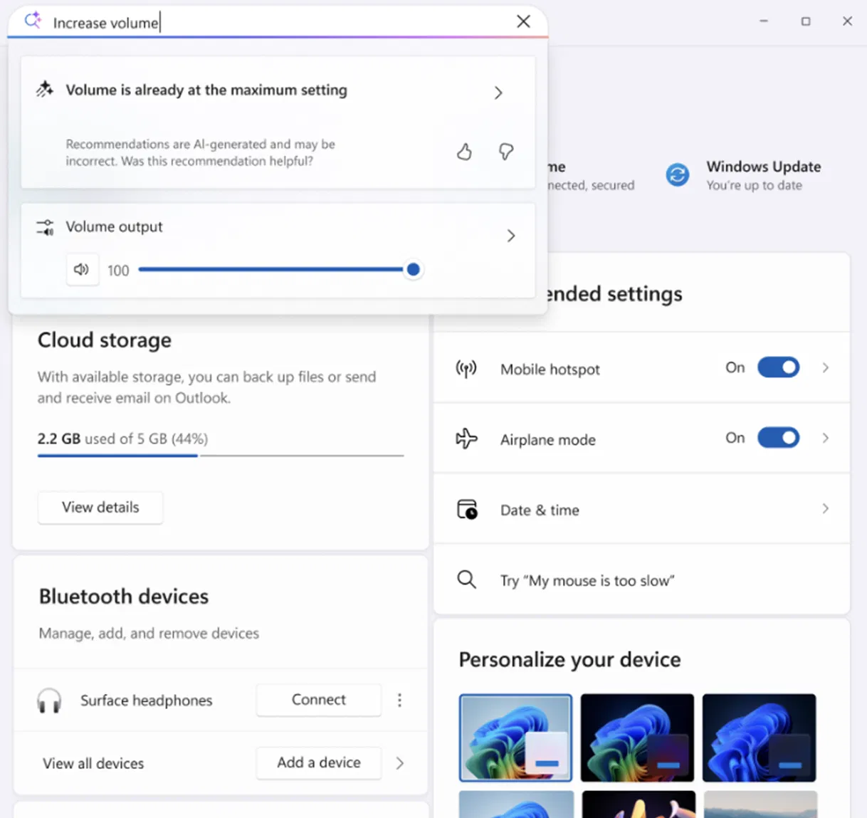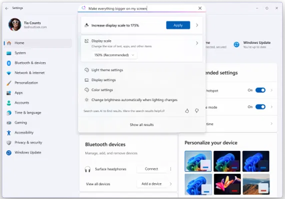 Параметры Copilot+ ПК теперь включают в себя новые возможности для настройки системы с помощью агентов Microsoft. Они значительно упрощают доступ к недавно измененным параметрам.