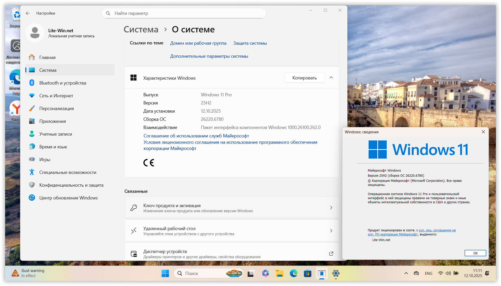 Система Windows на основе релиза Windows 11, который был поддержан до 10 октября 2025 года. Все функции и службы сохранены при обновлении.