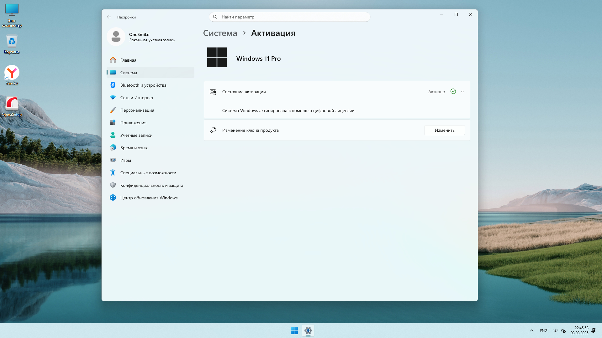 Windows 11 Pro by OneSmiLe 25H2 build 26200.5733 облегченная сборка, работающая с августа 2025 года без защитника и телеметрии, для компьютера с процессором не менее двух ядер, ОЗУ 4 ГБ, места на диске 20 ГБ и выше. Продукт не имеет стандартных приложений или службы.