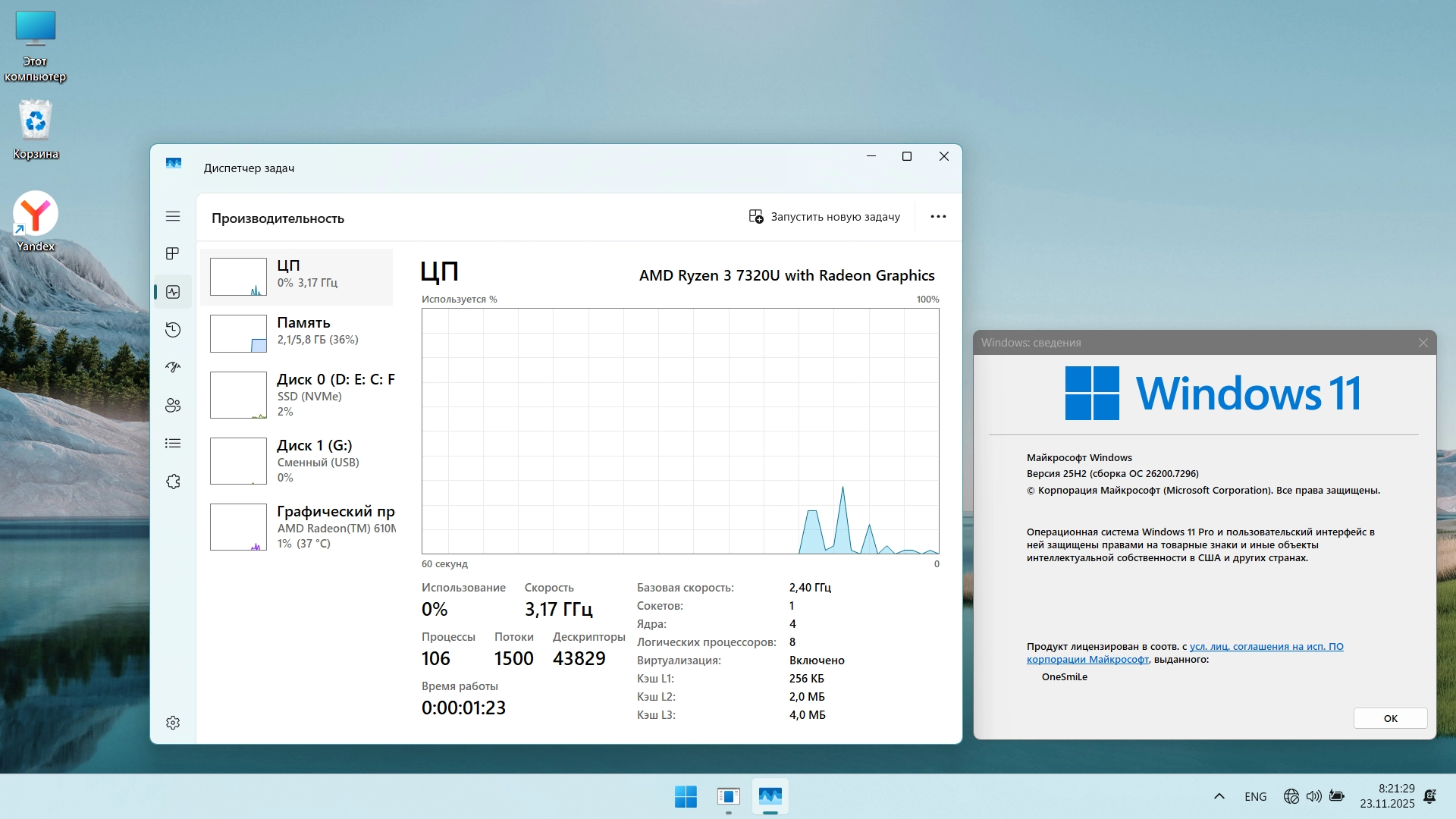 Сборка: Version 25H2 Build 26200.7296, Windows 11 на основе последнего билда от 18 ноября 2025 года.