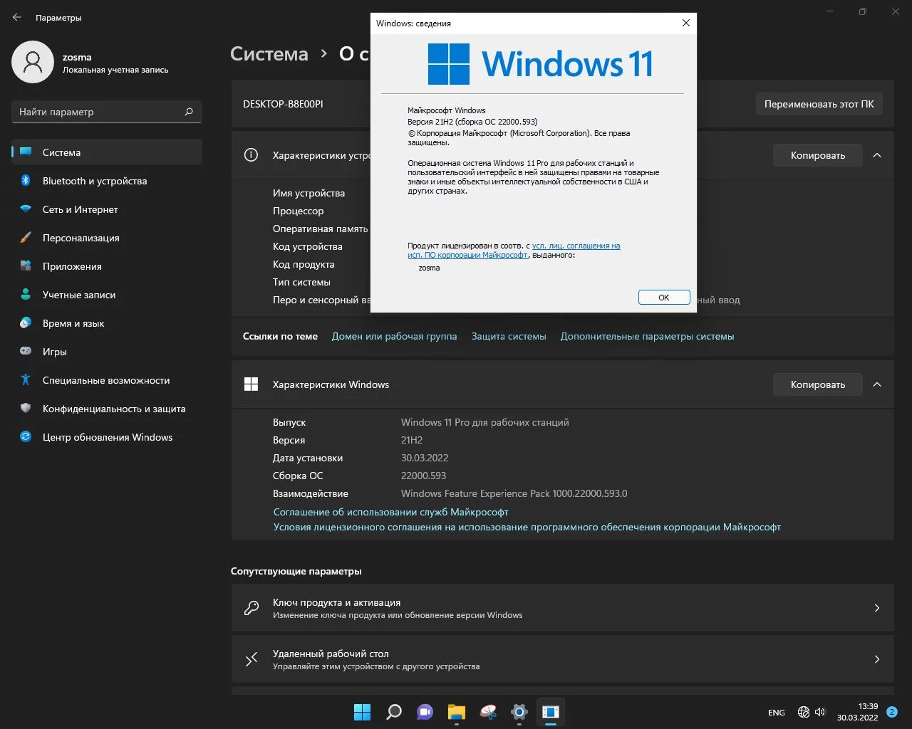 Windows 11 Pro For WS x64 Micro 21H2 build 22000.593 by Zosma