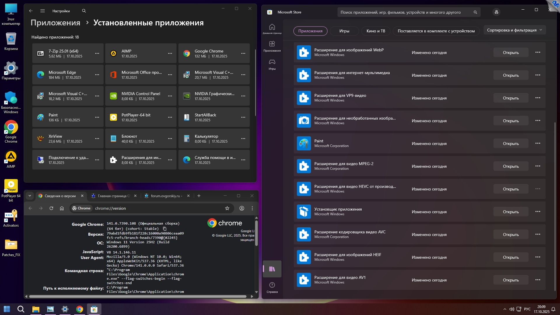 - Плагины MicrosoftStore и некоторые ненужные функции отключены.