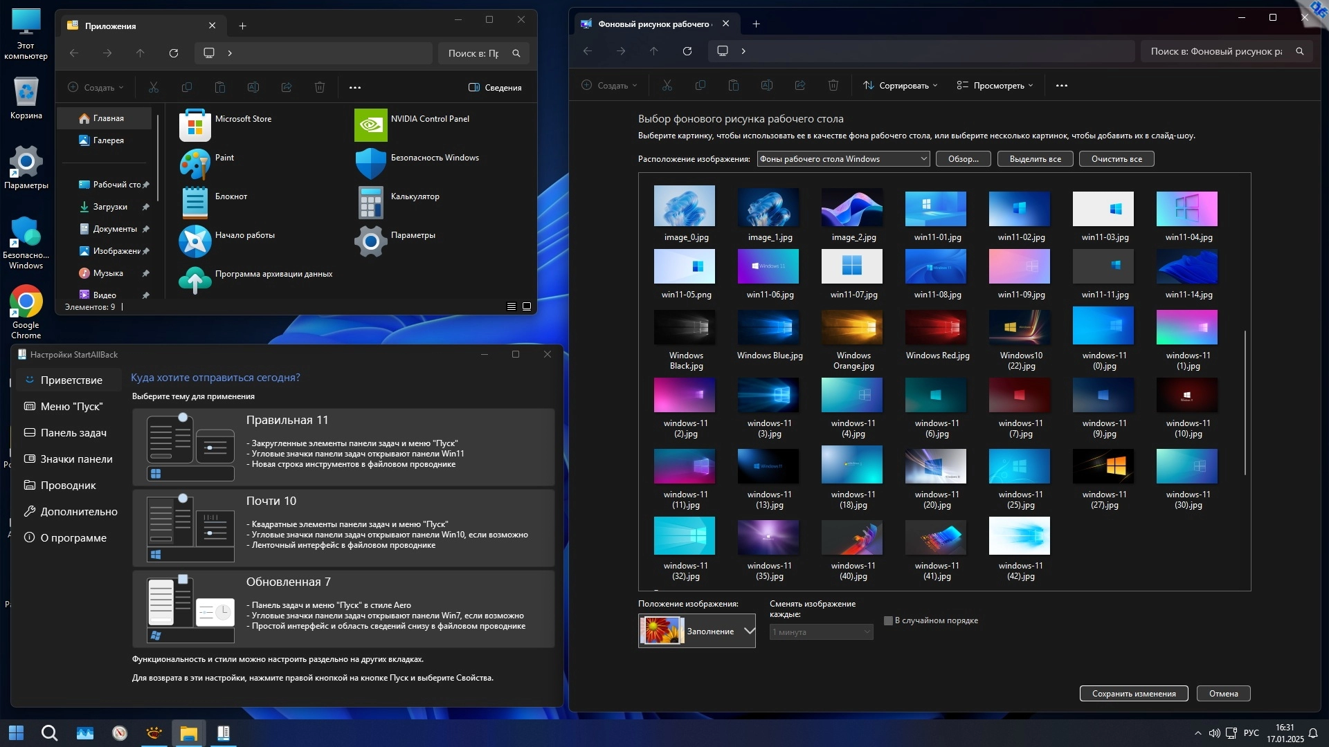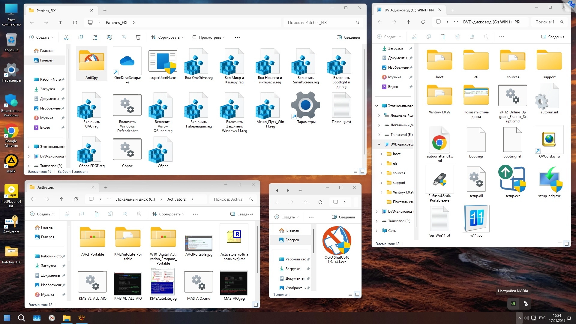 Сборка без плиточных приложений, шпионских функций, служб и ненужных инструментов. Разблокирована на не поддерживаемых компьютерах. Интегрированы обновления, Microsoft Edge, Office ProPlus, PotPlayer, AIMP, 7-Zip, Yandex Browser, XnView и StartAllBack.