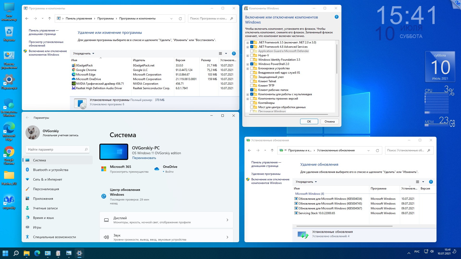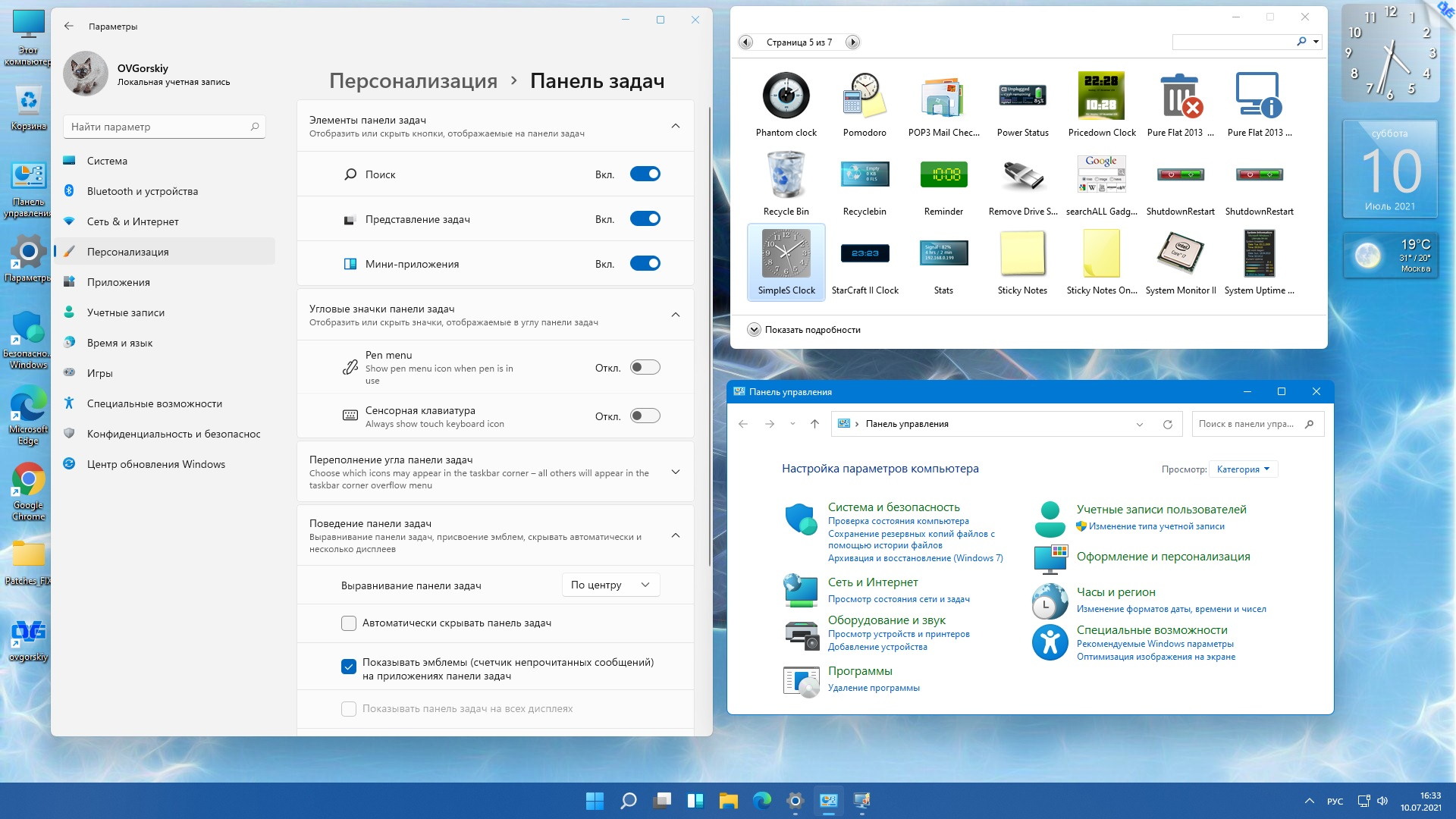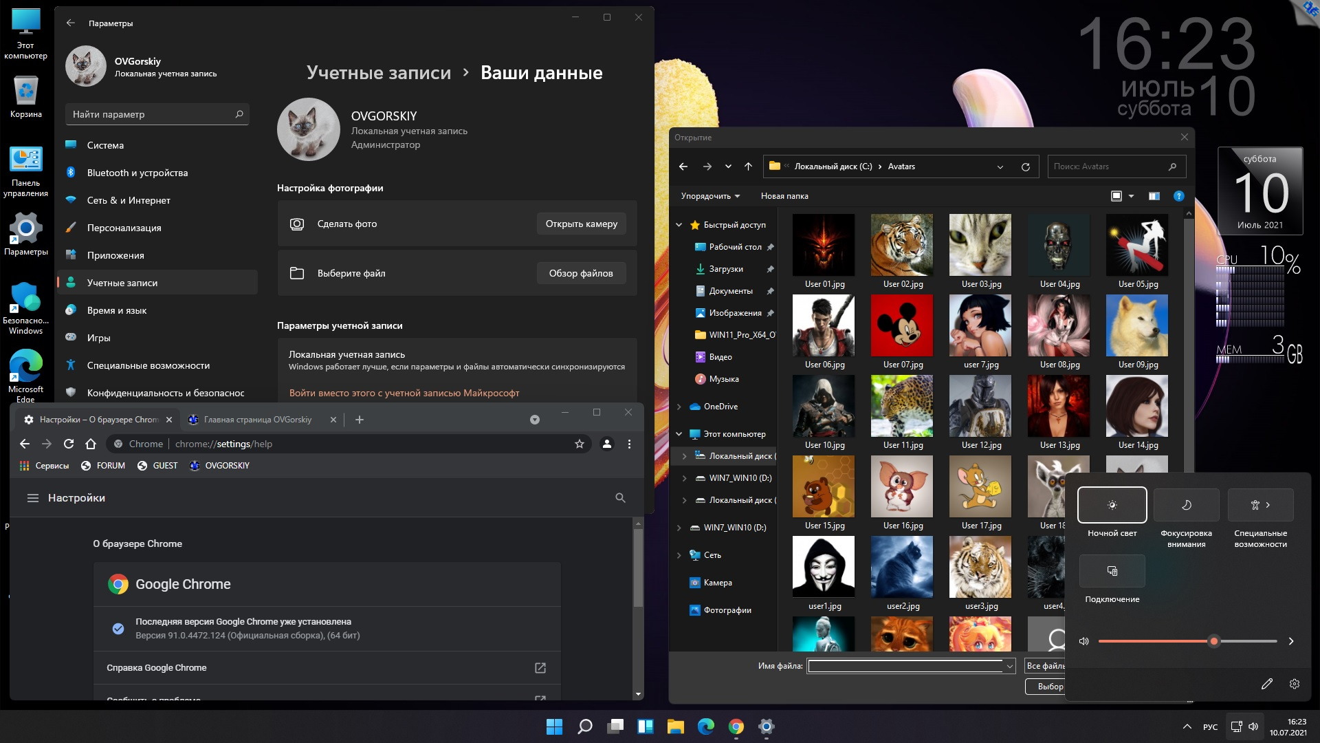 - автоматически устанавливаемые приложения: Microsoft Edge 91.0.864.67 Stable, обновление до актуальной версии Edge; Google Chrome 91.0.4472.124 Stable, альтернатива Edge и Internet Explorer; 8GadgetPack v33.0, программа для установки в систему гаджетов рабочего стола