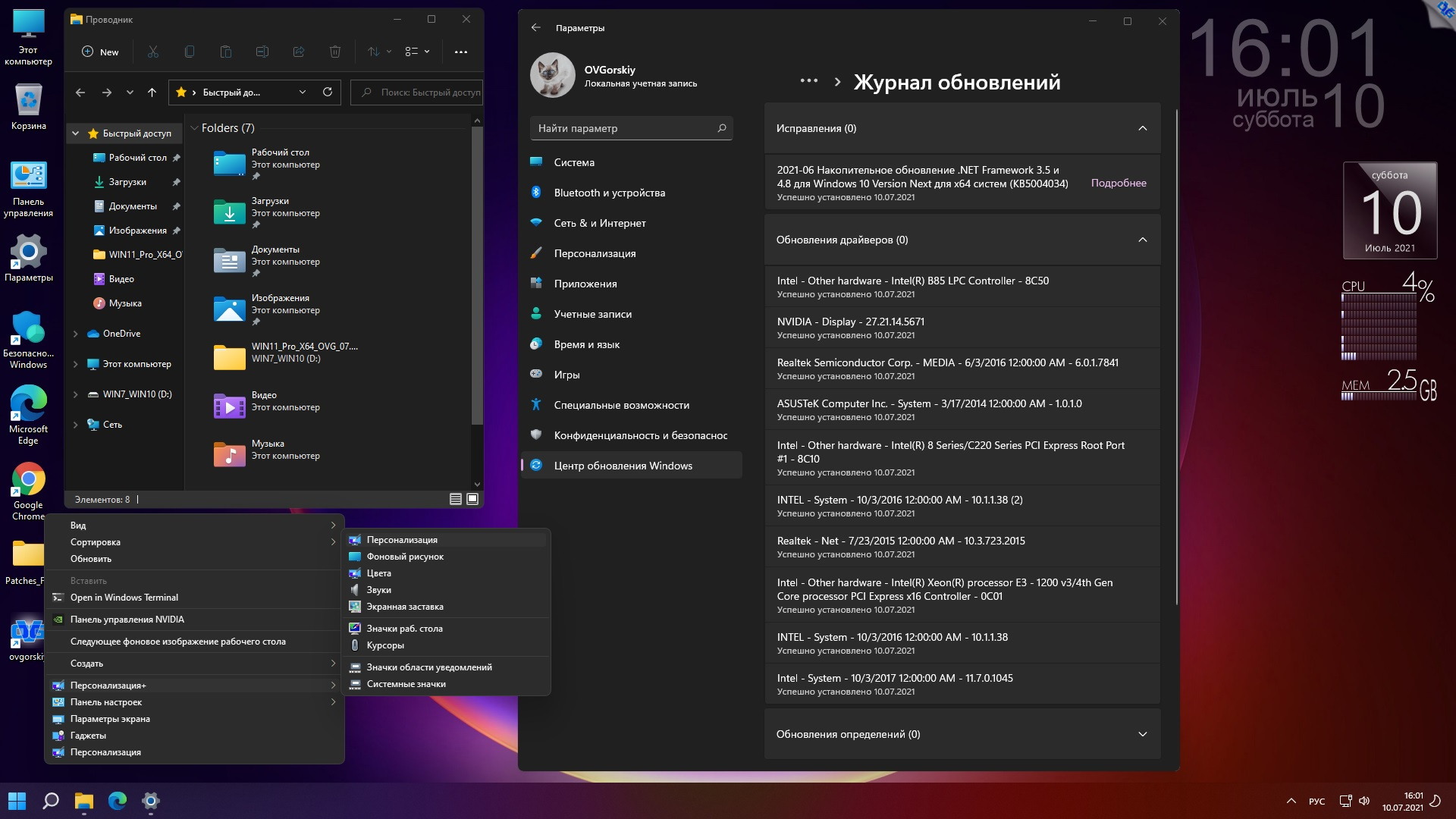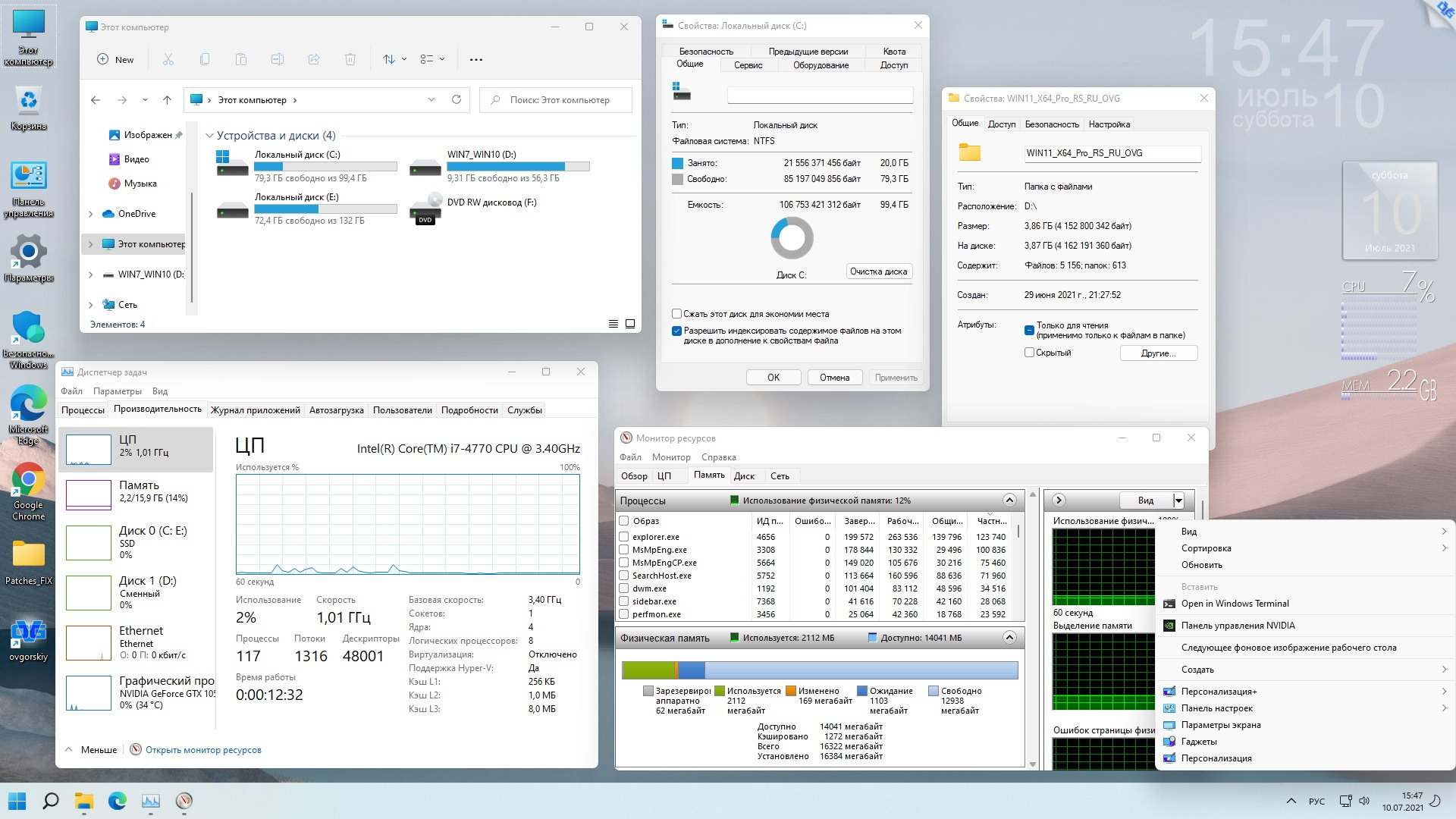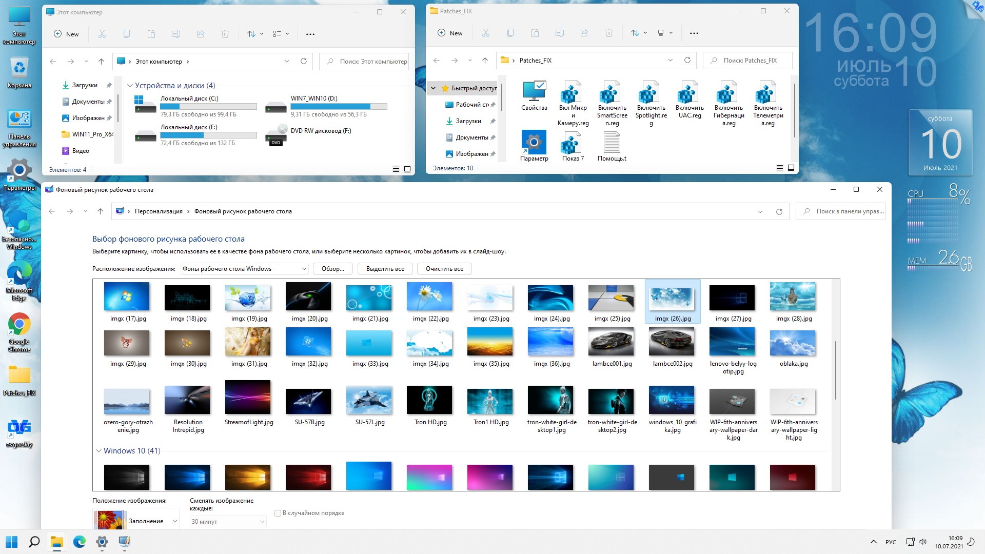 - автоматически устанавливаемые приложения: Microsoft Edge 91.0.864.67 Stable, обновление до актуальной версии Edge; Google Chrome 91.0.4472.124 Stable, альтернатива Edge и Internet Explorer; 8GadgetPack v33.0, программа для установки в систему гаджетов рабочего стола