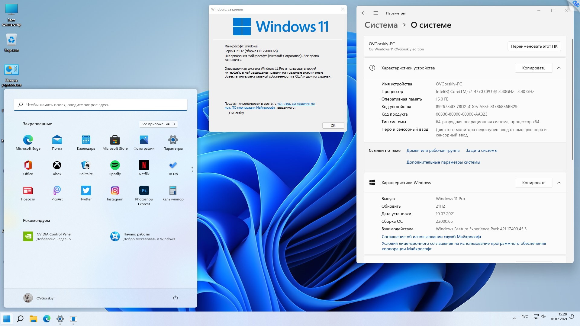 Windows 11 Pro Insider Preview 21H2 (10.0.22000.65) by OVGorskiy (x64)