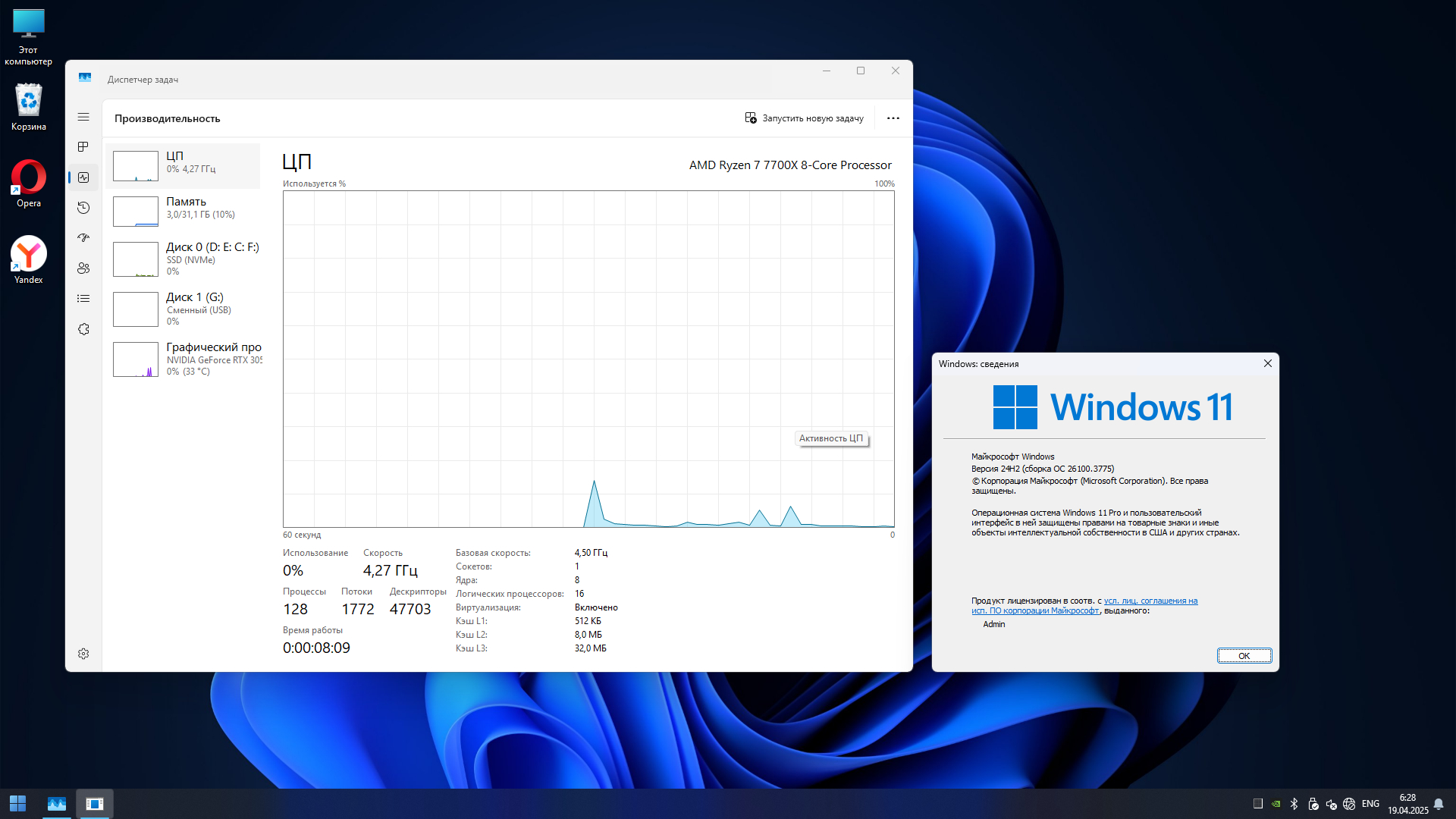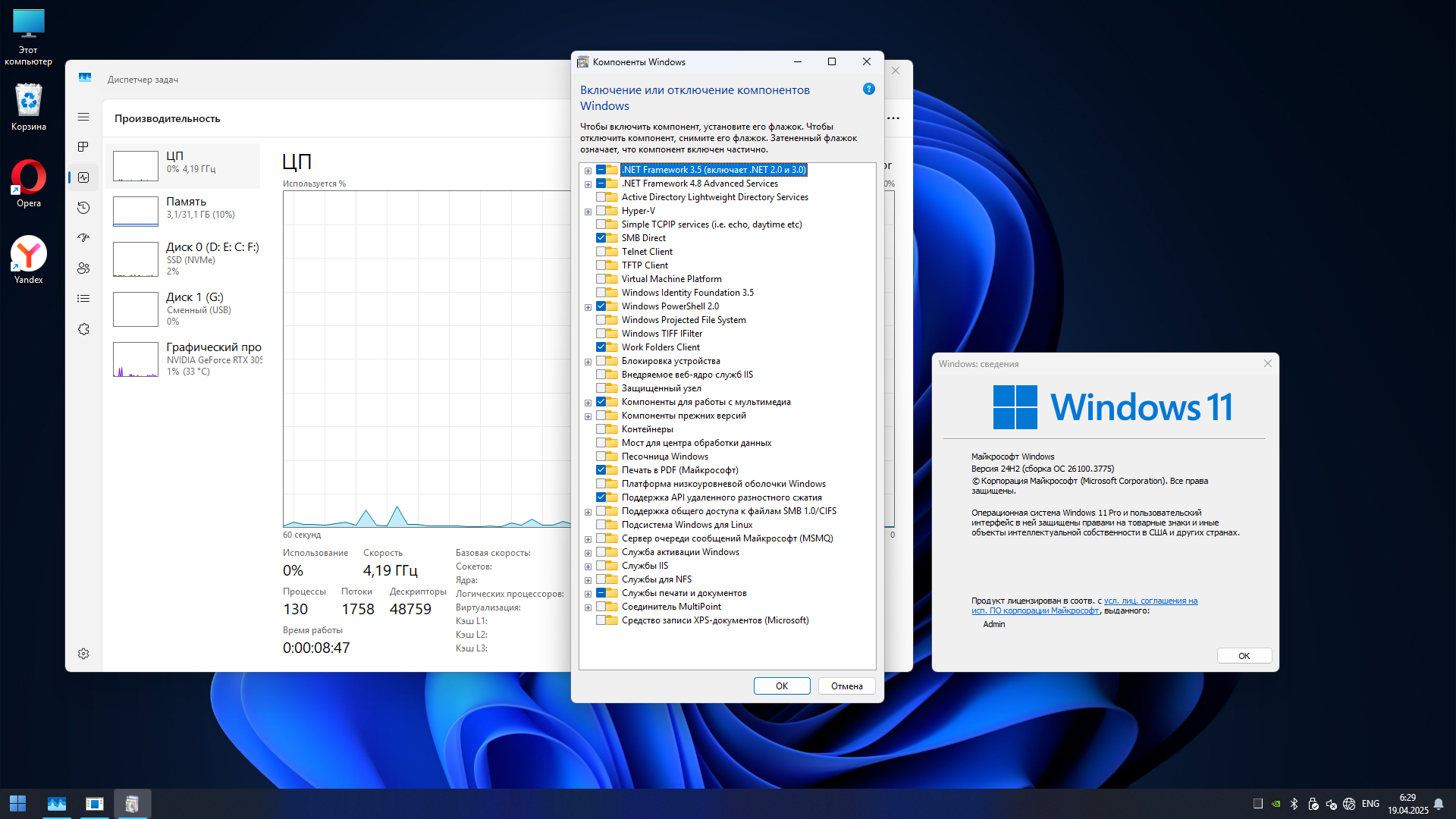 Windows 11 Pro русская версия 24H2, обновленная до Build 26100.3775 (стабильный, без перебоев) с возможностью установки в жестком диске и системой активации на TSforge.