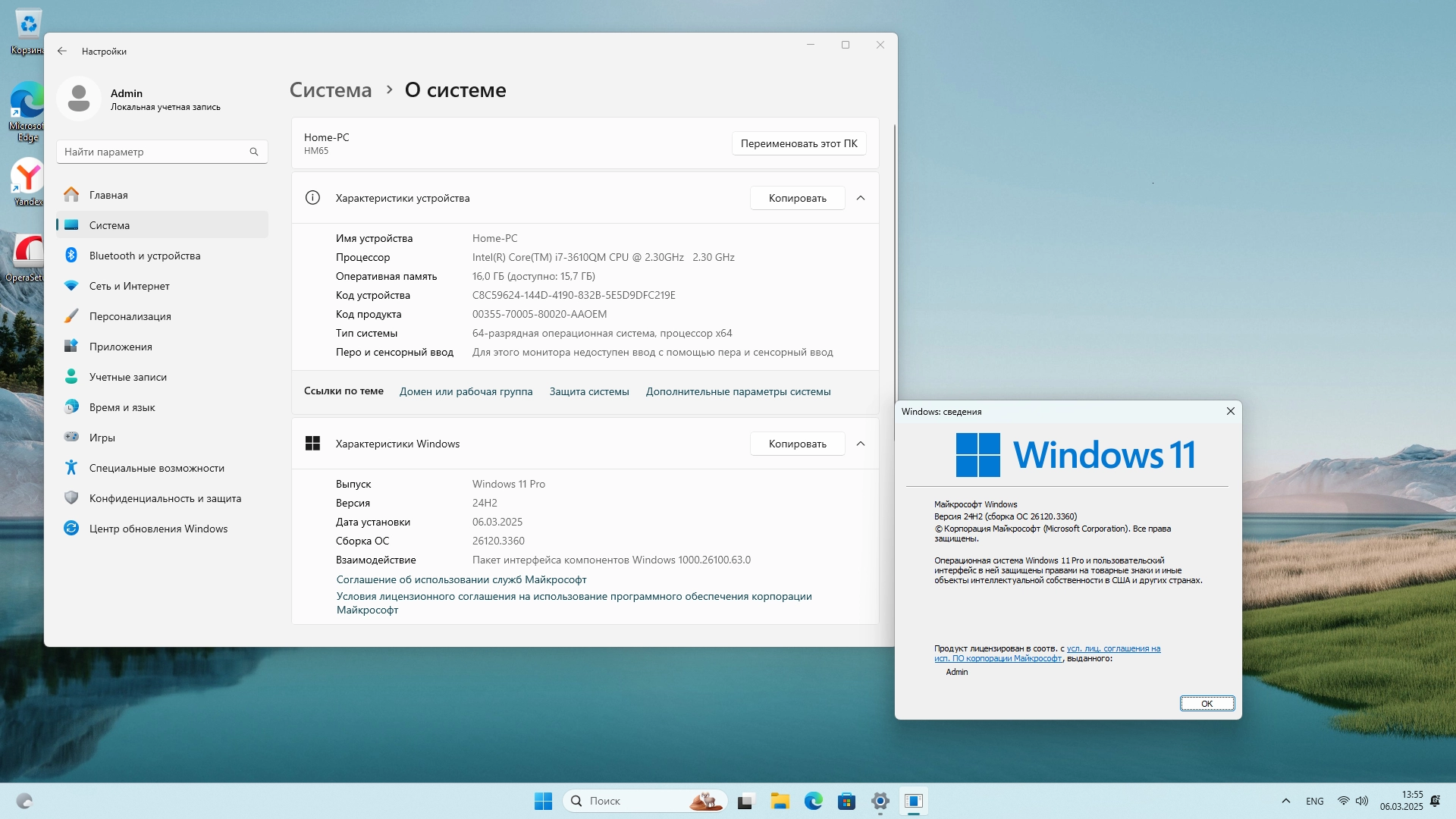 Windows 11 Pro Русская 24H2 Build 26120.3360 Образ информация для профессионального использования с предварительными обновлениями до конца Февраля 2025 года. Компьютер: Процессор не менее двух ядер (1 ГГц и выше), ОЗУ 4 ГБ, диски на 20 ГБ или больше.