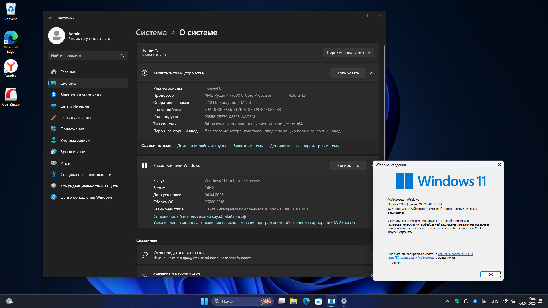 Windows 11 Pro Русская 24H2 Build 26200.5518 Dev