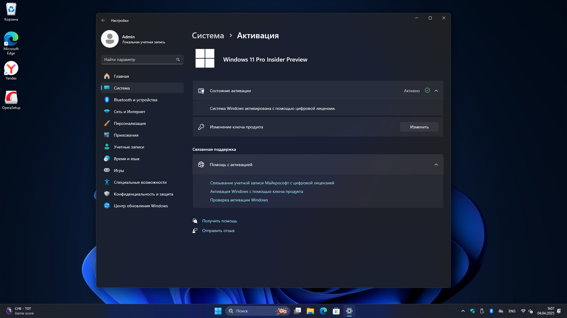 Версия Windows 11 24H2 с предварительными обновлениями на канале Dev, без удаляния или отключение нижних системных функций.
