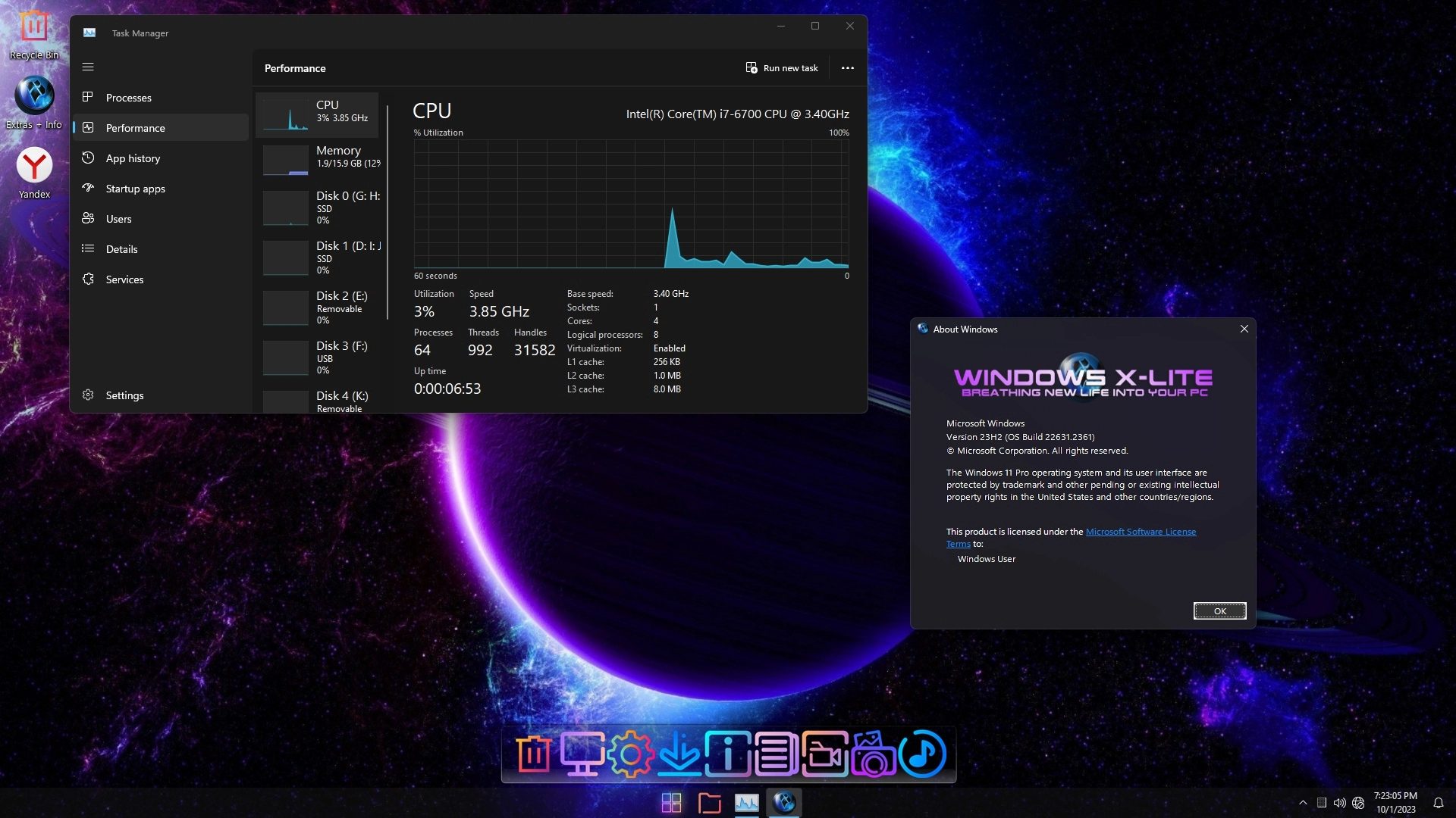 Windows 11 Pro X-Lite 'Ultimate Neon' 23H2 Build 22631.2361 Представляем вам Windows 11 Профессиональной Редакции Light Edition с превосходным оформлением, функциями Windows 11 23H2 и дополнительными улучшениями. Отключена телеметрия , возможность выбора
