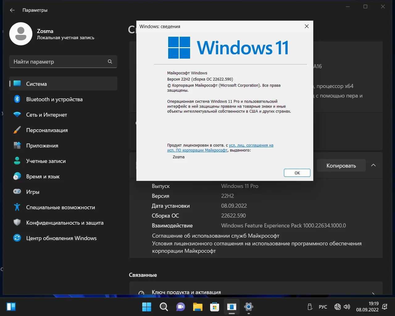 Windows 11 Pro x64 Lite 22H2 build 22622.590 by Zosma
