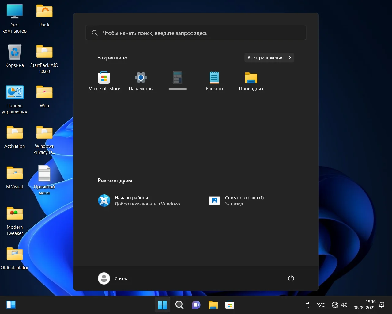 Скриншоты Windows 11 Pro x64 Lite 22H2 build 22622.590 by Zosma торрент: