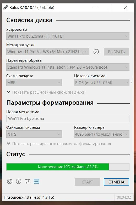 Инструкция по установке При установке отключение интернета обязательно , во избежание лишних проблем и вопросов В сборке используется загрузчик на основе модифицированных ядер WinPe 10 от Xemom1 & korsak7 (смотрим скриншоты) Установка только на чистый отформатированный раздел SSD / HDD диск , загрузившись с записанной флешки ( никаких setup.exe нажимать не нужно ) Контрольные суммы Имя: Windows 11 Pro x64 Lite 22H2 build 22622.590 by Zosma.iso Размер: 2454552576 байтов (2340 MiB) CRC32: 50BB6B07 CRC64: 244344D0088B40A4 SHA256: f1a7cf313dd2a46e711c0133583a24b24769c2ce07fd672e4e0d9e78aa6e1cdf SHA1: 4f5fc01aa1b92aec01a4d81dcc972cbb0fc3d556 BLAKE2sp: c8f0f42ec4b647caabfefcfb6be2db0e35aefaf8182c7f7a626673ed72152f01