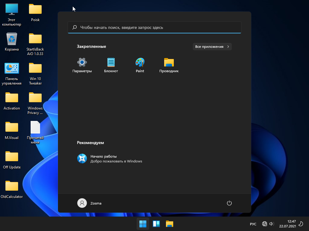 Windows 11 Pro x64 micro 21H2 build 22000.71 by Zosma Отключены компоненты связанные с шпионством и отправкой телеметрии. Отключены бесполезные (вредные) службы. Отключена размытие фона экрана приветствия. Удалены ненужные задания в планировщике.