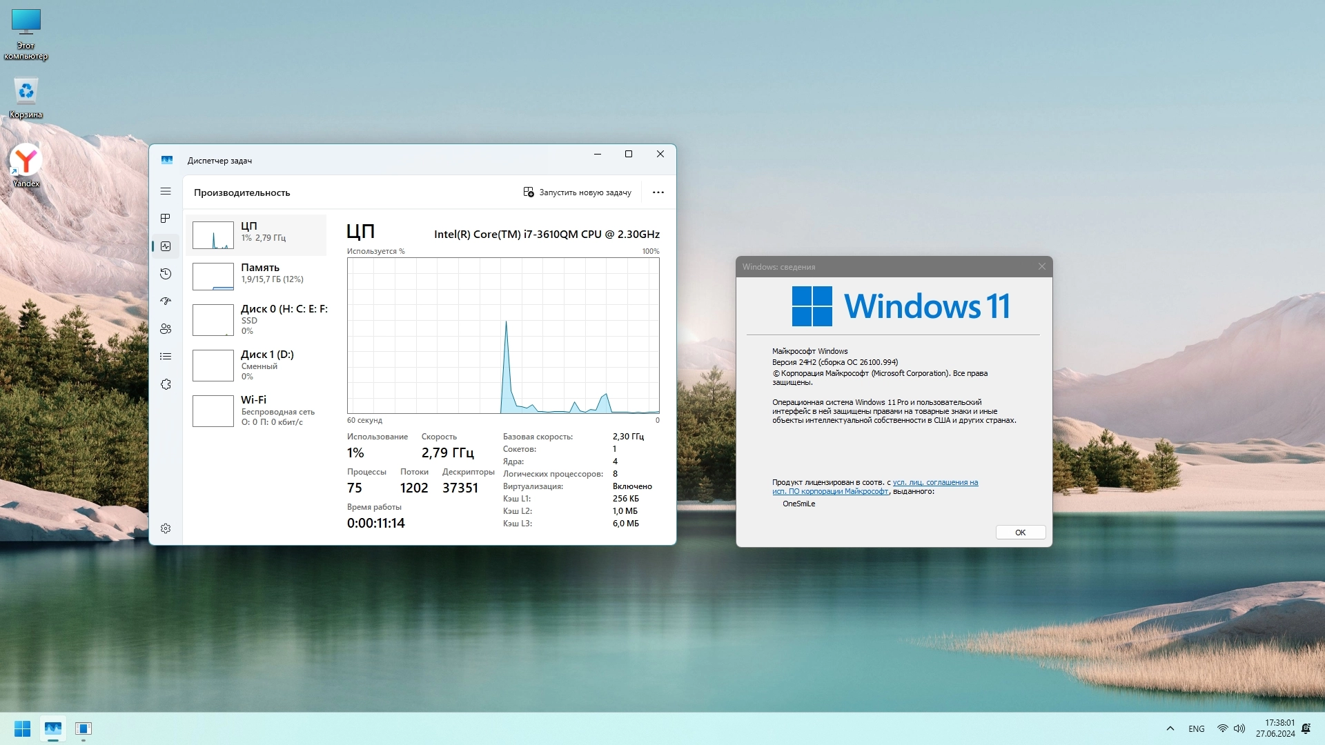 Windows 11 Pro x64 Русская теперь отключена система Meltdown и Spectre, а также установлено 7-Zip, Yandex браузер ( ).