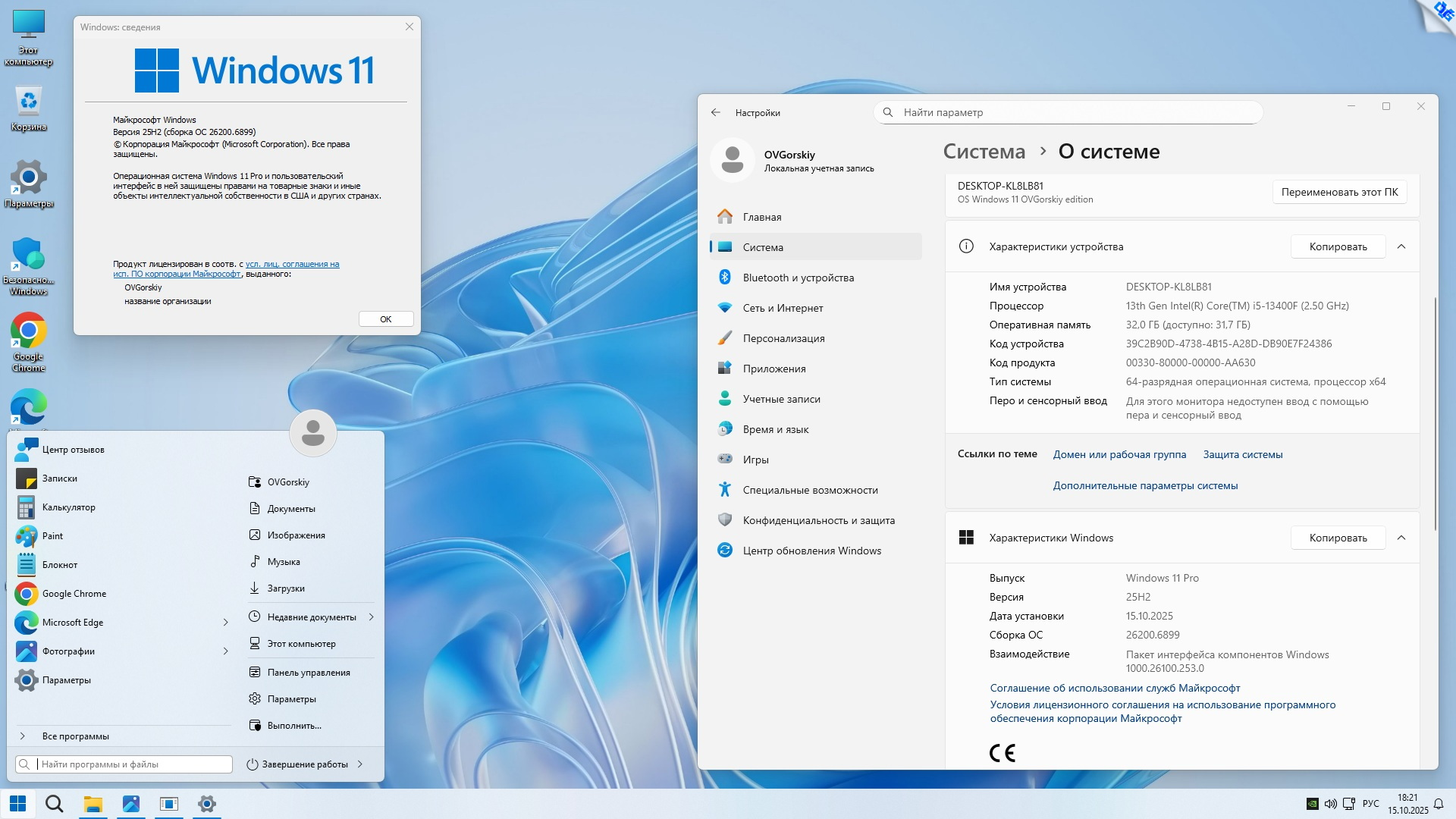 Windows 11 Professional VL x64 25H2 Русская, версия 26200.6899 (25H2). Сборка от OVGorskiy, обновленная на основе новых русских образов 25H2. Операционная система Windows 11 Pro VL x64, установка с параметрами для комфортного использования. Компьютер: AMD64 процессор и выше с SSE4.2 и UEFI безопасной загрузкой. Жесткий диск 64 ГБ. 1366x768 пикселей.