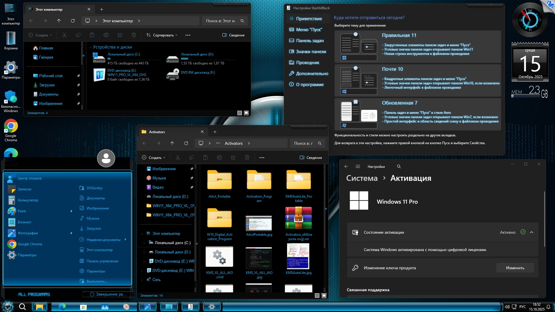 - Особенности: программа для возврата в систему привычных кнопок меню, дополнительные темы и картинки рабочего стола, обновления и более.