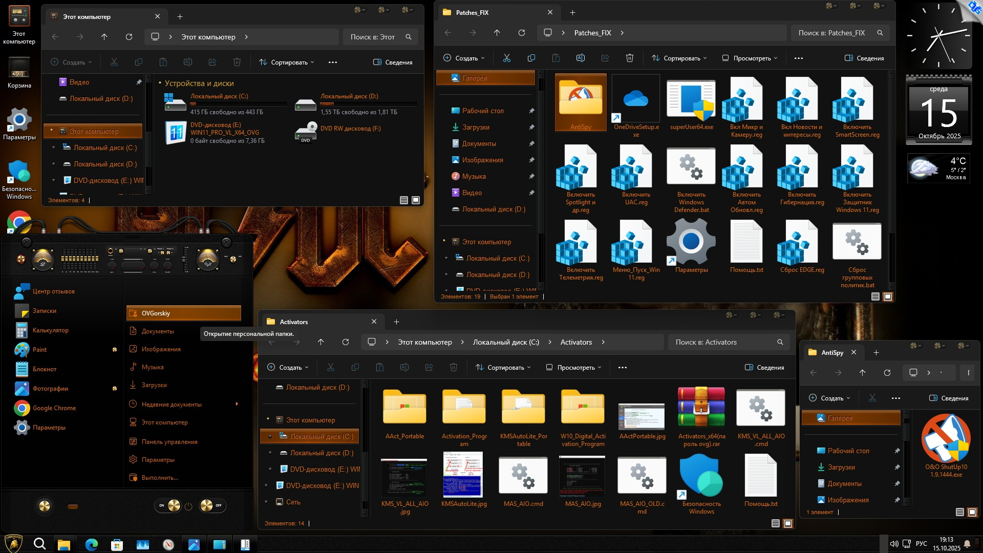 Для удобства в работе в образе ОС произведены небольшие изменения: