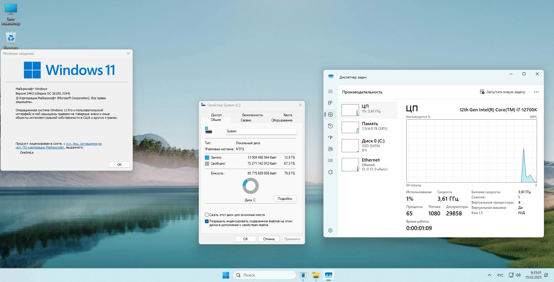 Windows 11 Pro/IoT/Ent LTSC версии 24H2 build 26100.3194, архив собран с последними обновлениями в феврале 2025 года. Компьютер подходит для системы с процессором не менее двух ядер и тактовой частотой более 1 ГГц или SoC с ОЗУ на 4 гб. Видеоадаптер DirectX 12 и выше, диагональ экрана свыше 9 дюймов и 8 бит на цветной канал. Без SecureBoot, TPM 2.0, Wi-Fi 6, отключена телеметрия, синхронизация и восстановление системы. Компания OneSmile предоставляет Windows 11 Pro/IoT/Ent LTSC торрент без устаревших требований и модернов.