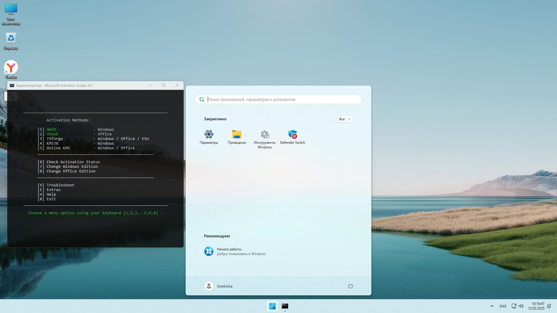 Приведение на рабочий стол: MAS_AIO, запуск инструкций.