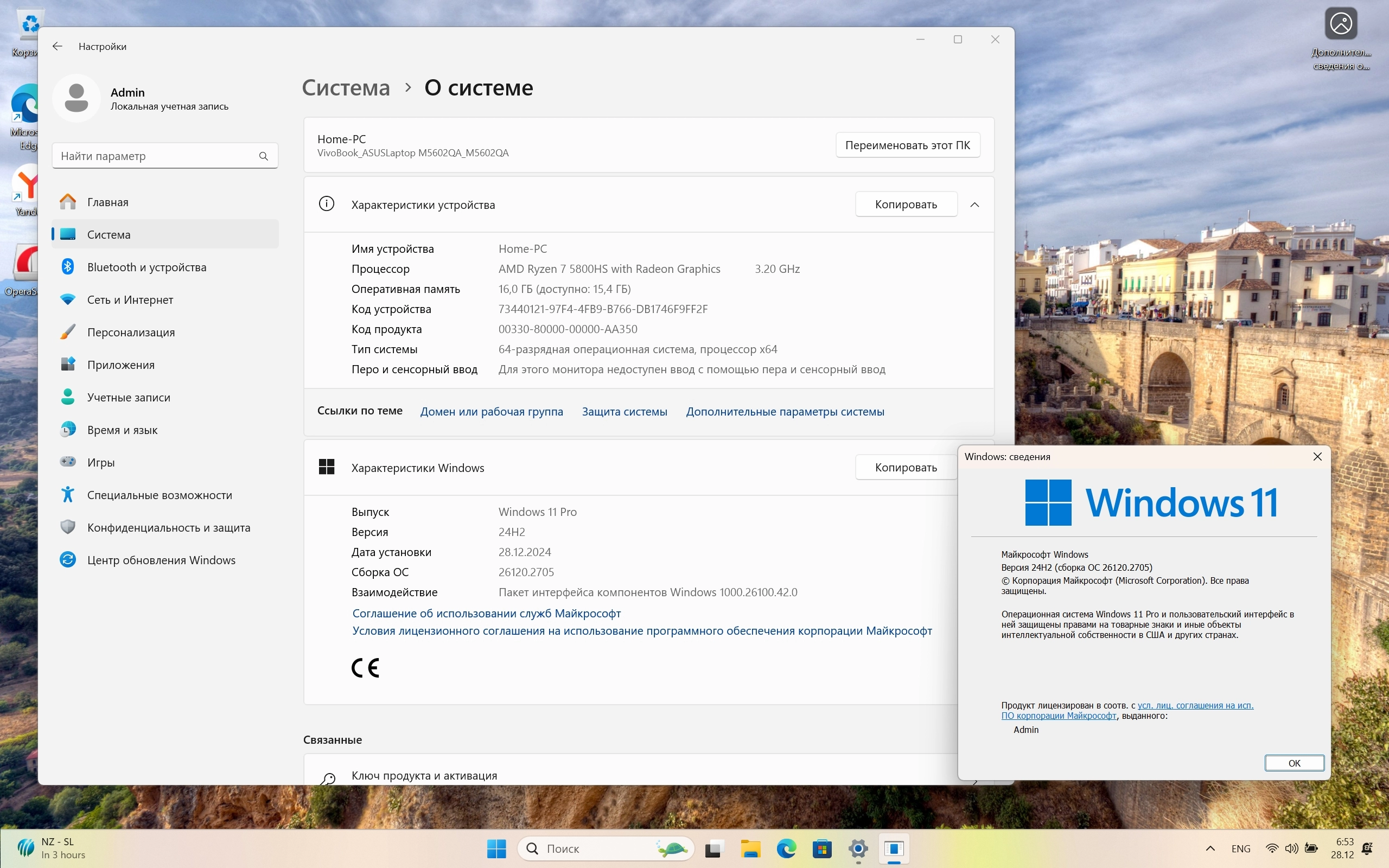 Версия Windows 11 24H2 Pro Build 26120.2705, распространяемая на канале Dev.