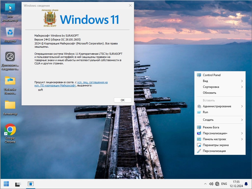 Windows 11 Русская 26100.2033_22261_22361.4602 Mod by SURASOFT торрент, изменения: Особенности сборки: