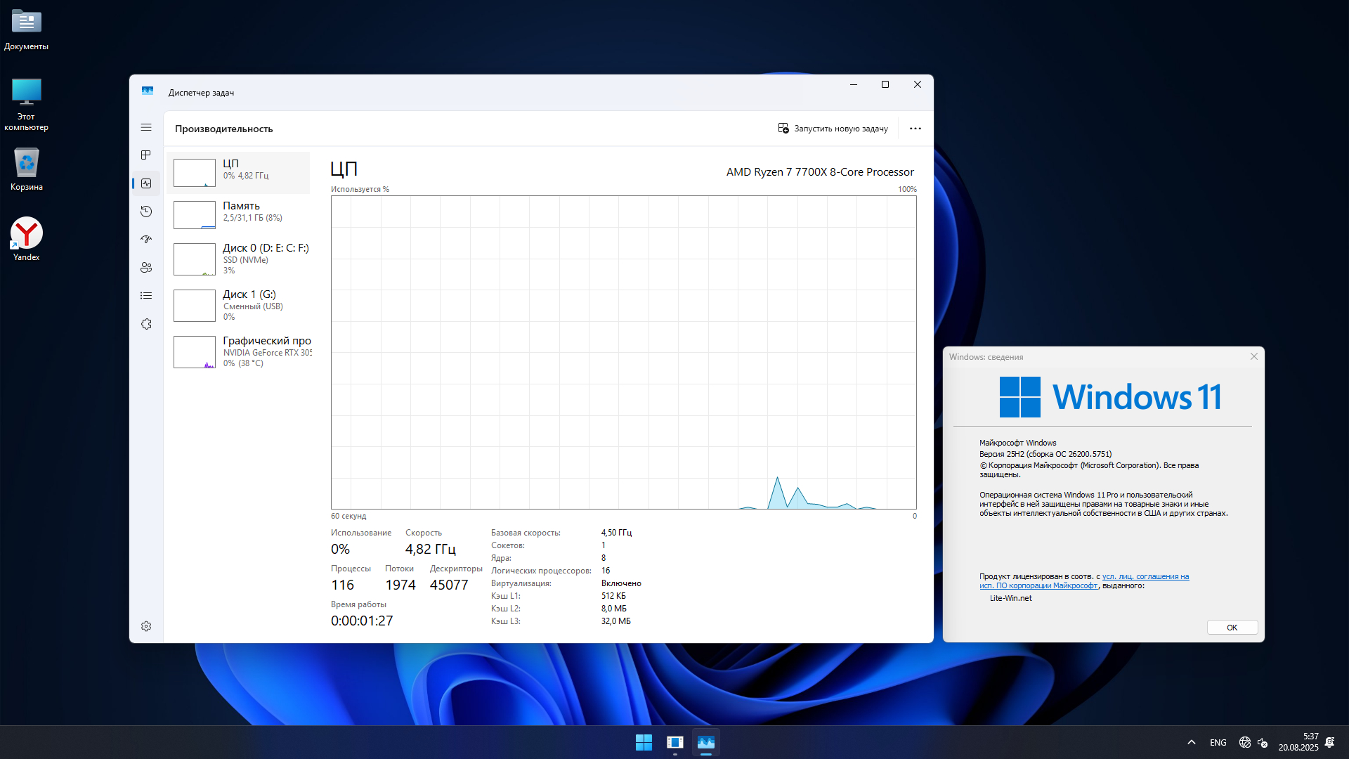 Сборка Windows 11 на основе билда 25H2 версии 26200.5751 предназначена для стабильной работы компьютера. Компьютер для системы: Процессор не менее двух ядер с частотой не менее 1 ГГц или SoC, ОЗУ 4 ГБ и больше на диске.
