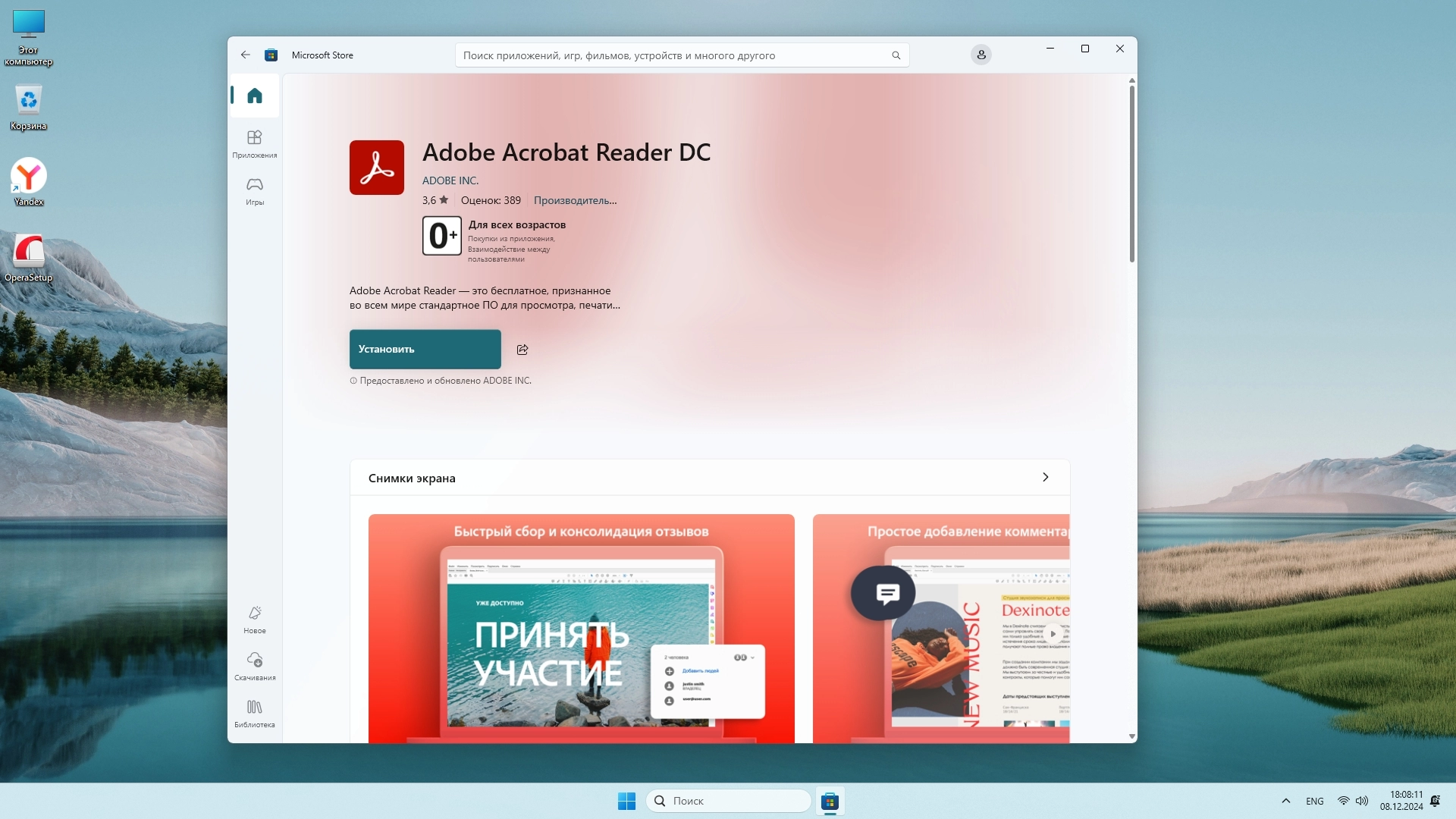 - Установлено: 7-Zip, Yandex