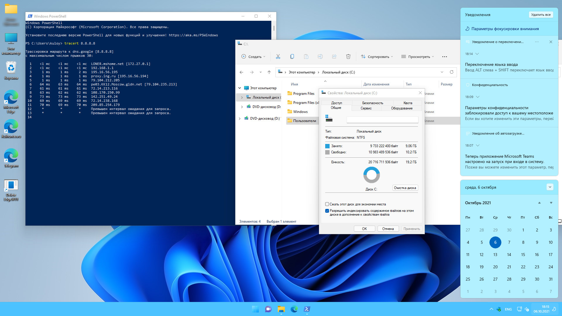 - Настроены темы Windows: