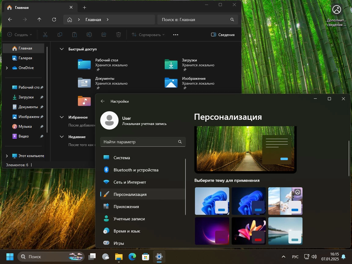 Сборка предоставляет широкий функционал, но уменьшена вместимость из-за совмещения редакций. Однако, благодаря ряду оригинальных решений, удалось получить продукт, объединяющий двадцать редакций Windows 11 в рамках единого дистрибутива, объем которого меньше шести оригинальных сборок.