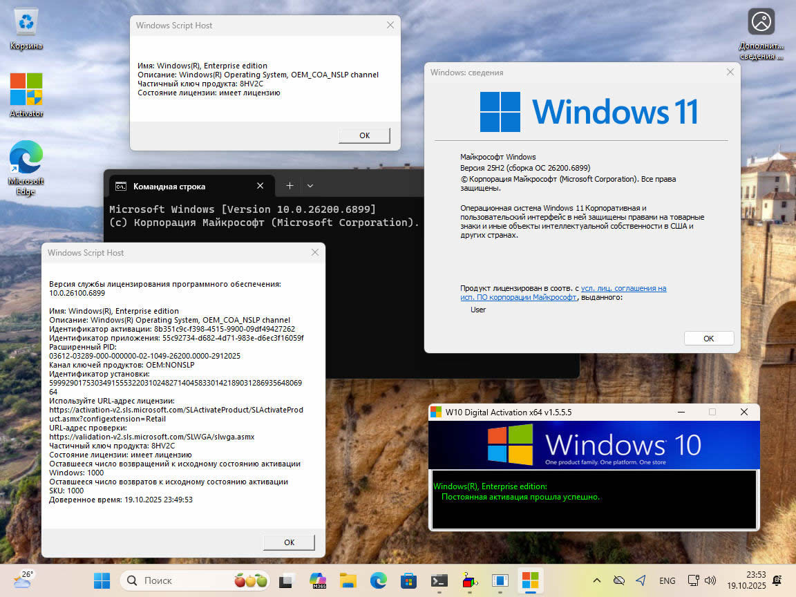Включает активатор W10 Digital Activation Program + KMS38 v1.5.5.5 от Ratiborus.