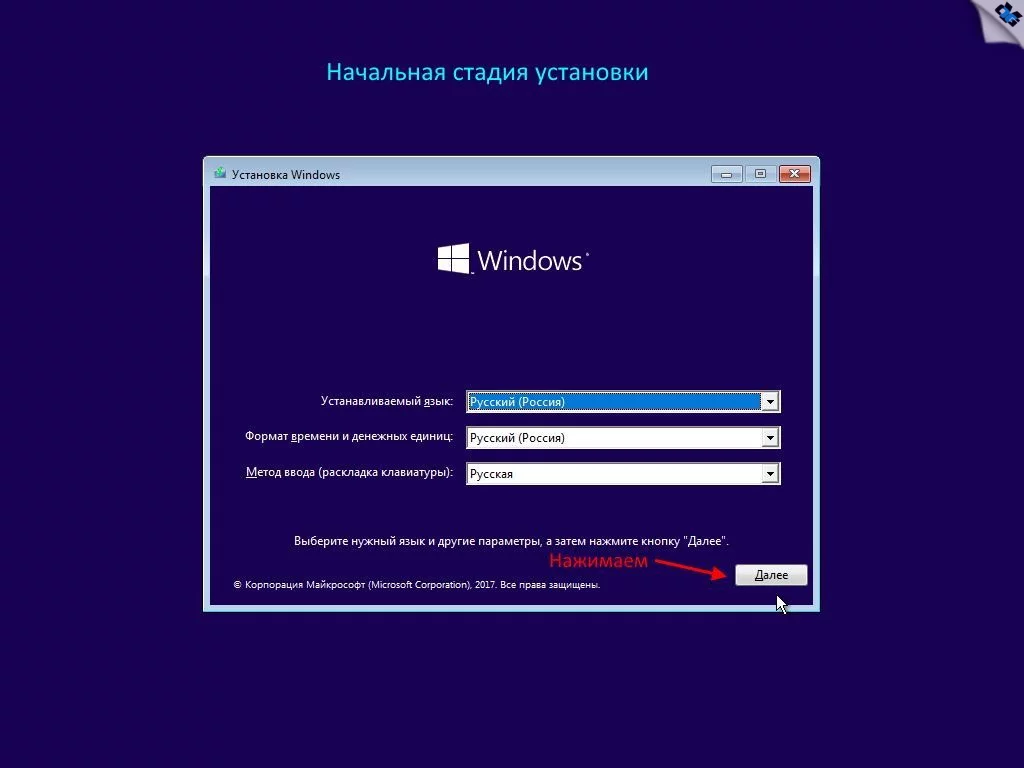 Для установки образа: