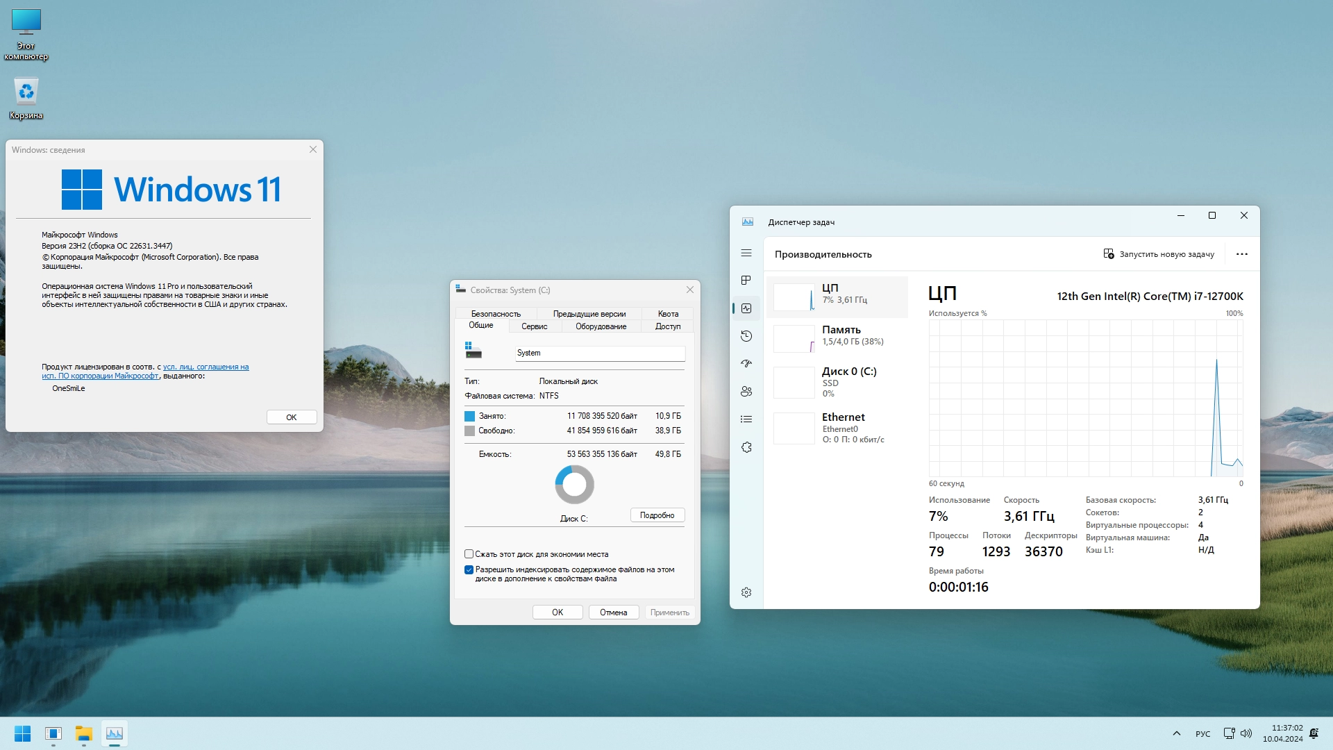 Этот продукт оснащен системой от OneSmiLe, которая устраняет все модерн приложения и автоматически настраивает включение / отключение различных функций для системы безопасности. Он полностью поддерживается, с температурами до -20°С (если не указано контекстное меню). Также добавлен новый пункт в контекстном меню при удержании SHIFT для .cab пакетов и удалённый режим запуска при Windows 11 x64 Русская.