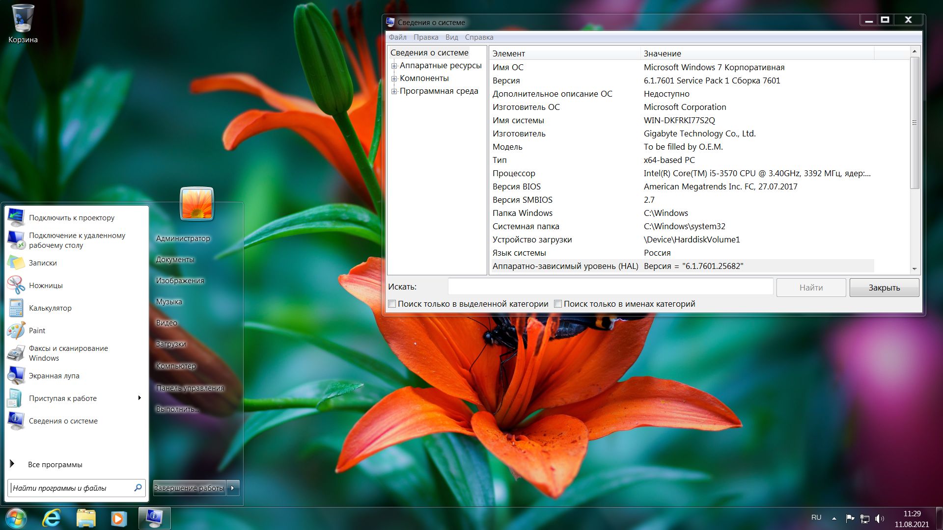 Система Windows 7 Enterprise SP1 x64 RU [GX 11.08.21] от gepnozeex (G.M.A). Версия: 6.1.7601.