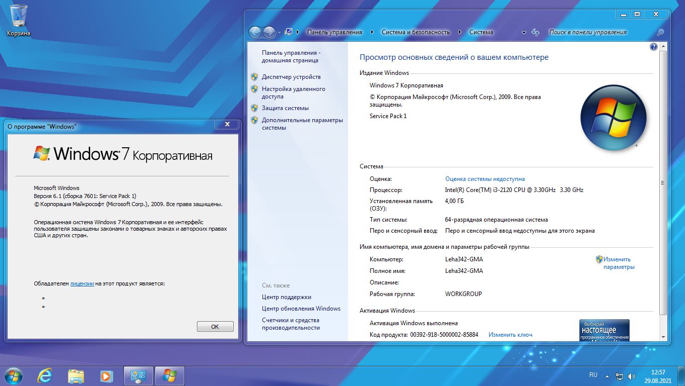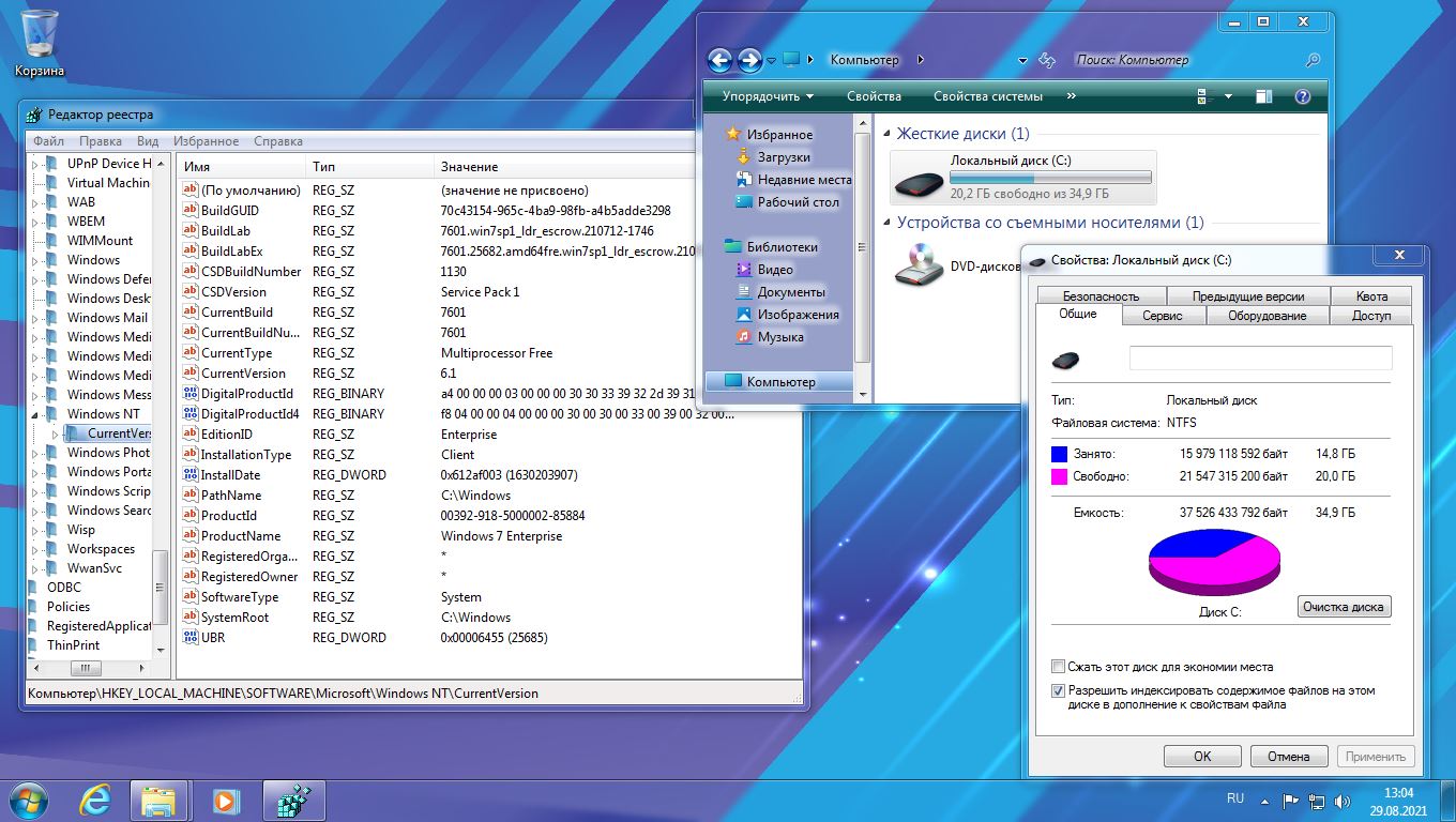 Скриншоты для Windows 7 Enterprise SP1 x64 [GX 28.08.21].