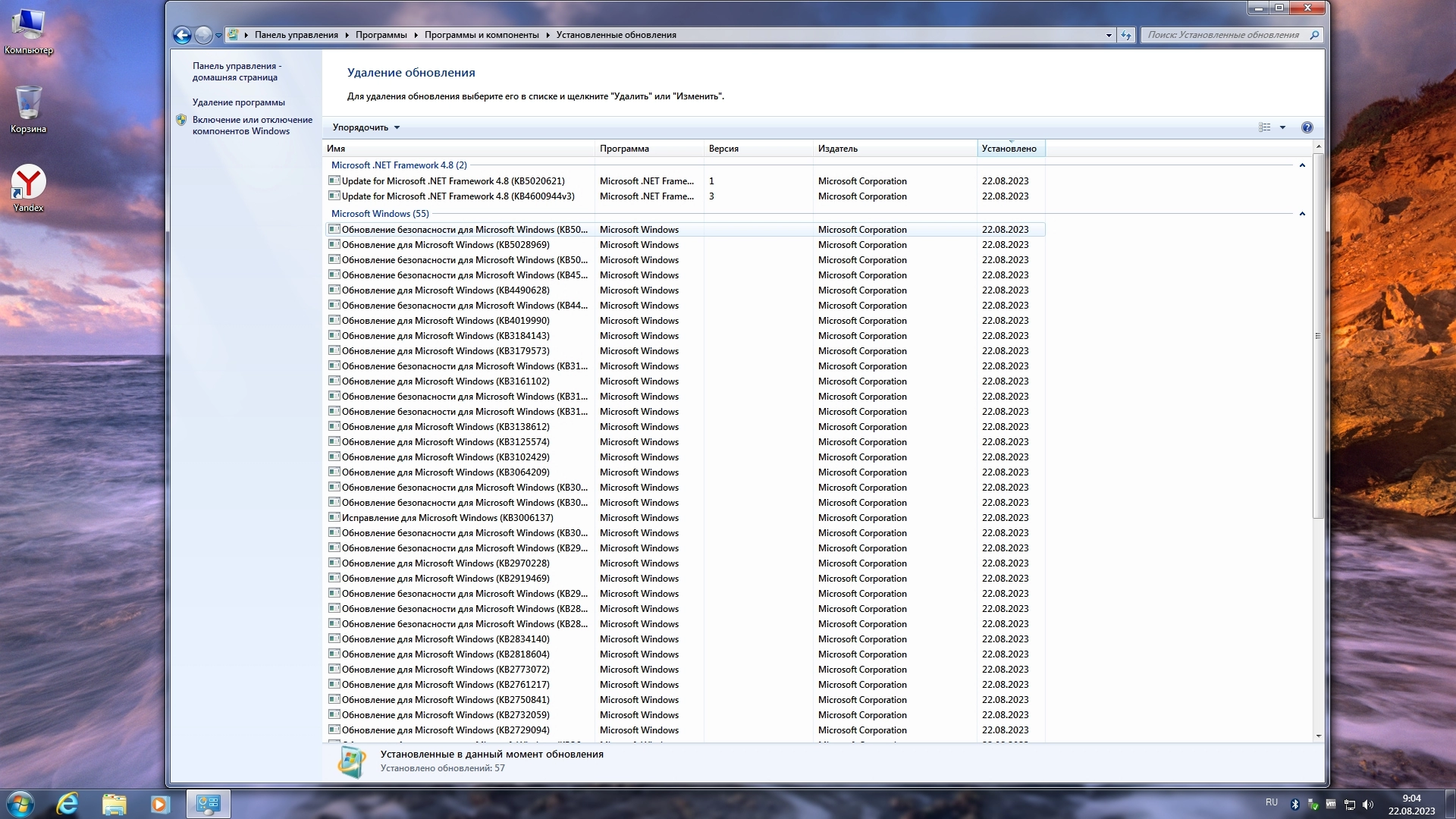 Windows 7 Enterprise SP1 x64 Rus [22.08.2023] торрент, изменения: