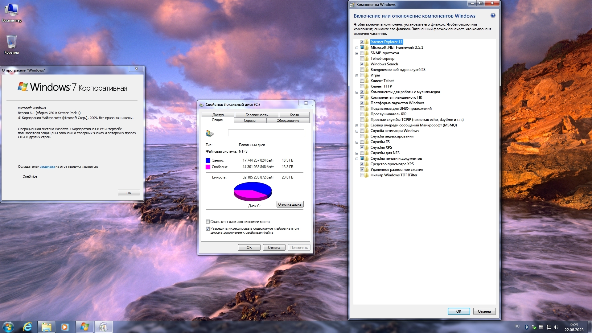 Windows 7 Enterprise SP1 x64 Rus от OneSmiLe: 22.08.2023