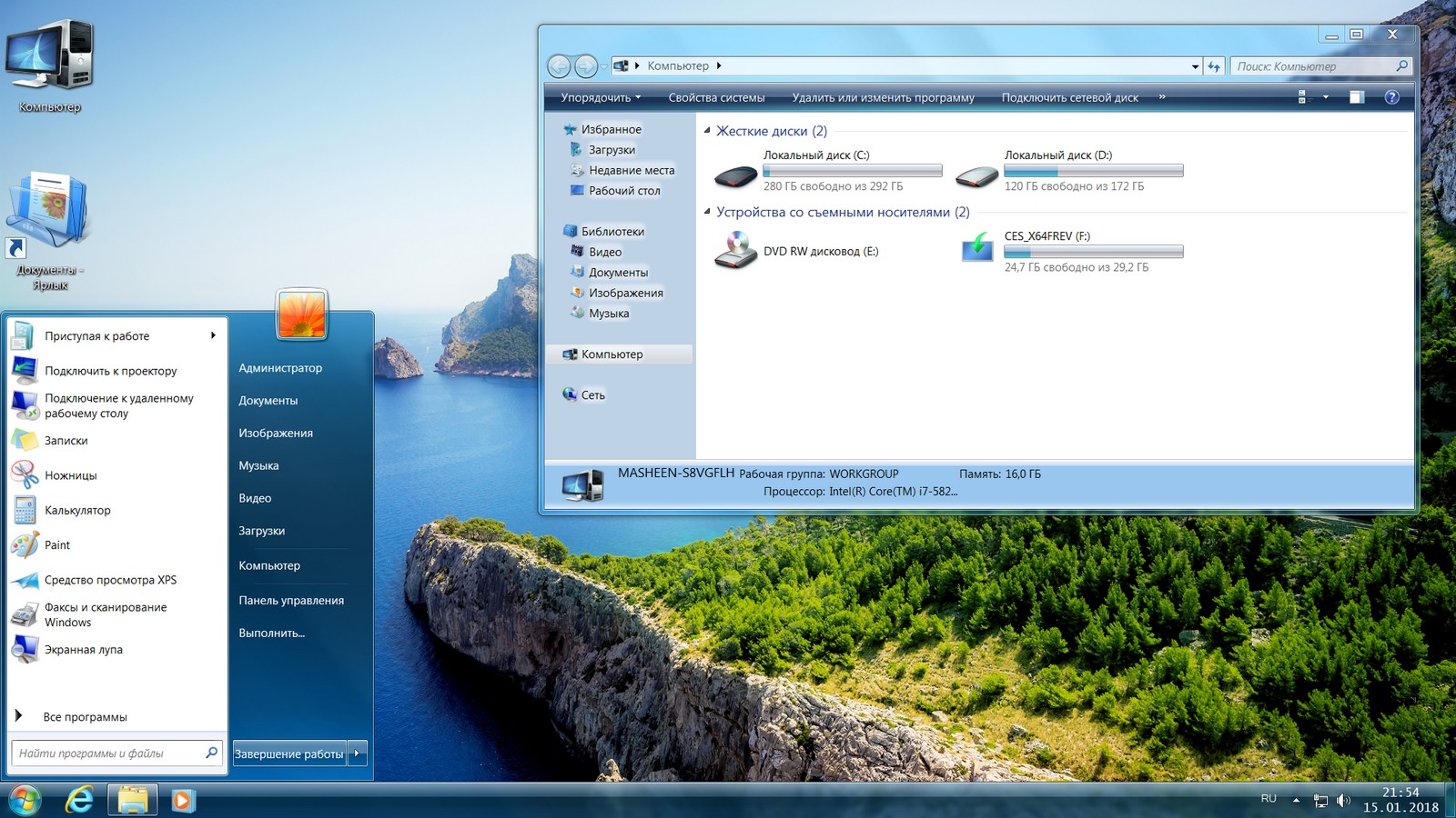 Windows 7 Enterprise SP1 x64 RUS G.M.A. v.16.01.18 торрент, изменения: