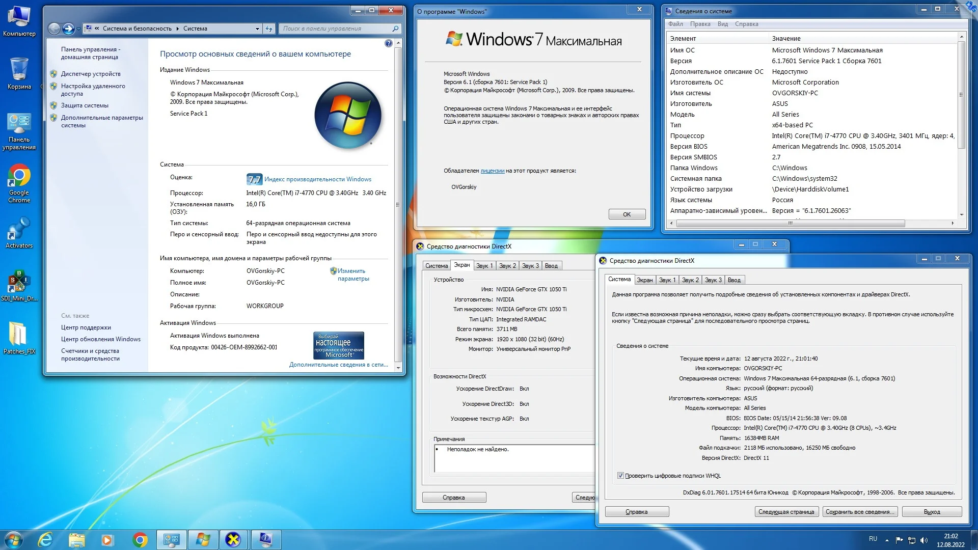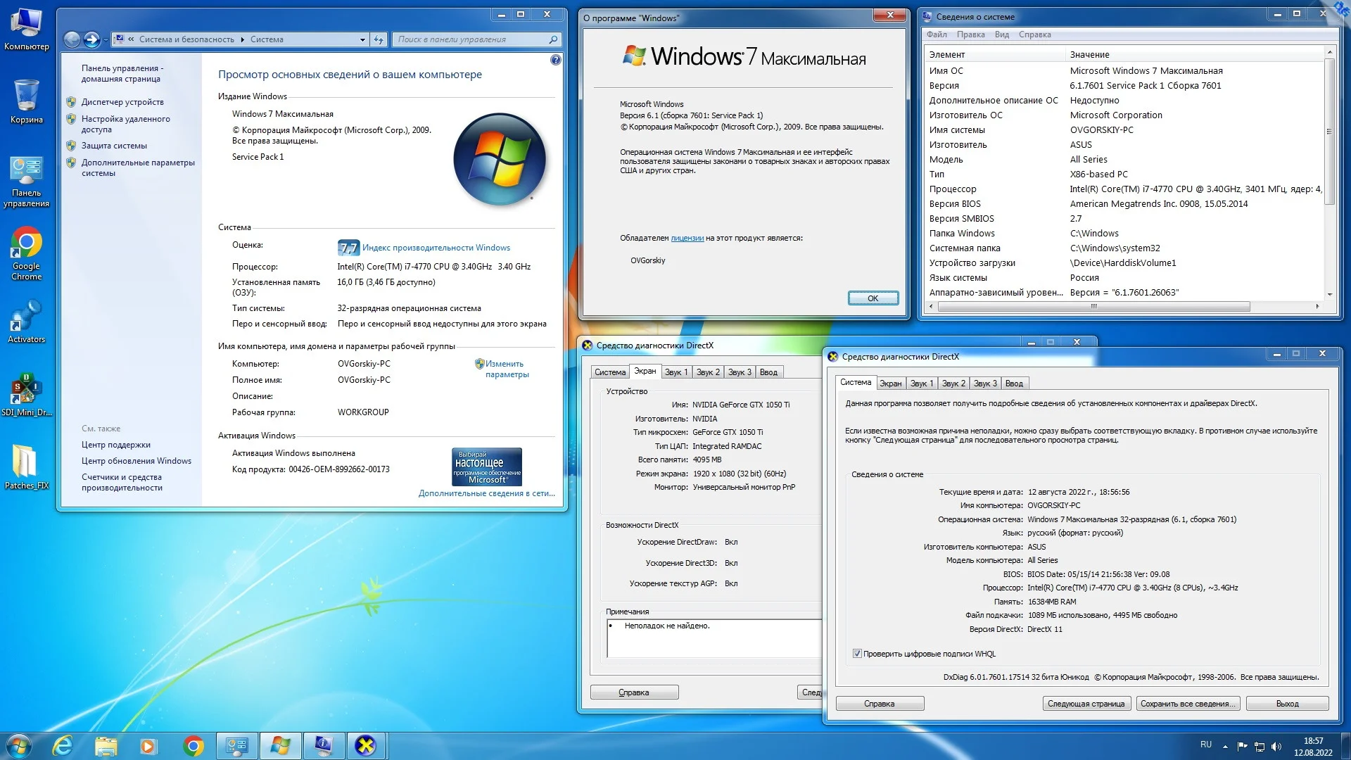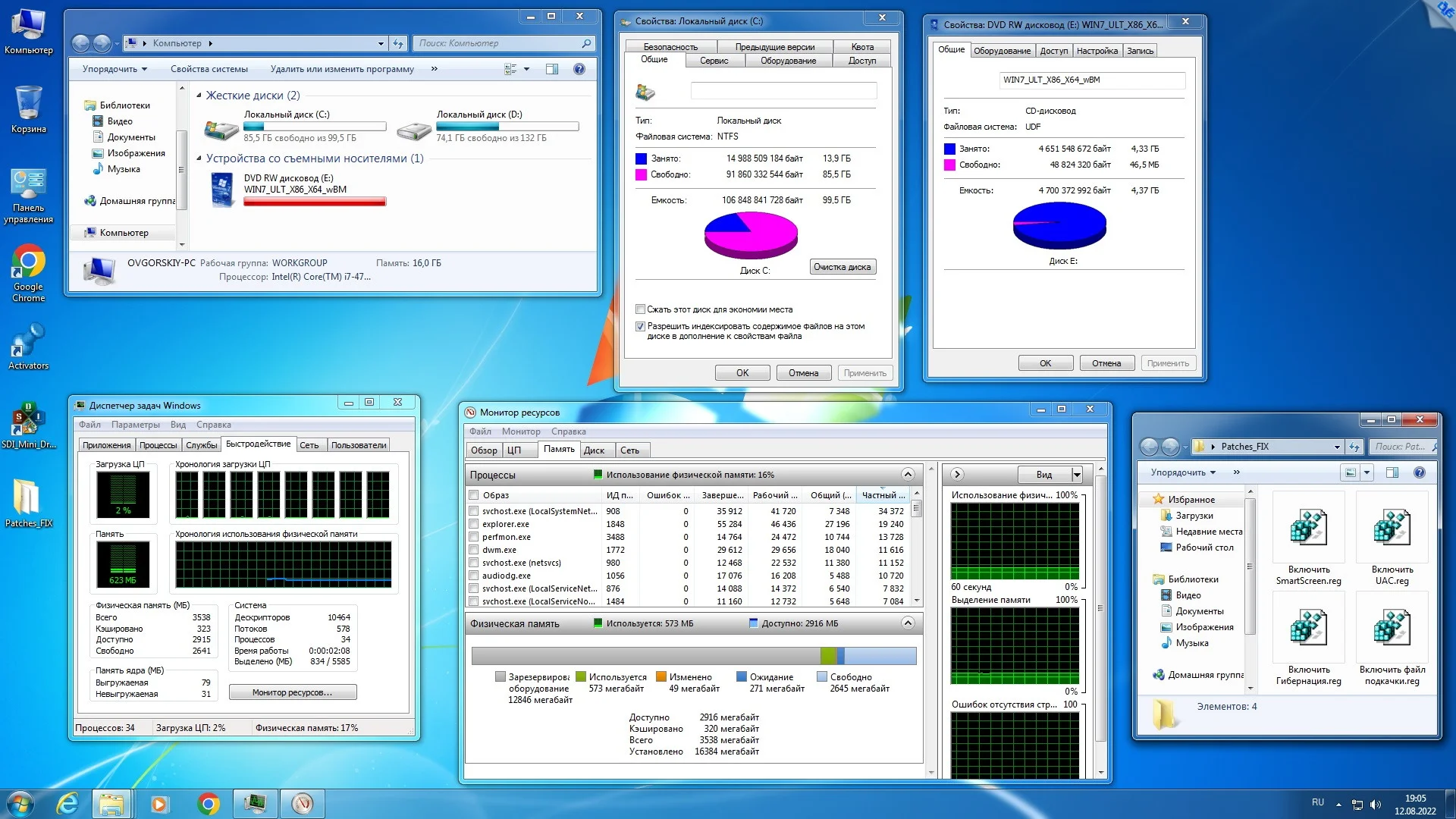 - Процессор: 1 гигагерц (ГГц) или выше с поддержкой PAE, NX и SSE2 (32 или 64-битный для x86, 64 битный для x64); - Оперативная память (ОЗУ): 1,2 гигабайта (для 32-разрядной системы) или 2 ГБ (для 64-разрядной системы) с поддержкой DDR3; - Пространство на жестком диске: 18 гигабайт (для 32-разрядной системы) или 25 ГБ (для 64-разрядной системы) с доступом только по ближайшей адресации. Windows 7 Максимальная Ru x86-x64 w.BootMenu by OVGorskiy 08.2022 1DVD торрент, изменения: Интегрированы: важные и рекомендуемые обновления по август 2022 г. включительно и Internet Explorer 11 ru x86/x64, отключена телеметрия, произведена небольшая настройка системы для удобства в работе. Сборка разработана по многочисленным просьбам тех, кому необходима чистая система после установки, и вопросы оформления готов заняться сам. Всё это предоставляет данная сборка, система, максимально приближенная к оригиналу и небольшое количество дополнительного материала для ручной установки и большой набор инструментов для работы с компьютером и ОС с установленным носителем. Сборка предназначена для установки из под начальной загрузки компьютера с загрузочного носителя на диски с MBR структурой. Образ не предназначен для установки из под существующей ОС и на компьютерах с GPT системным диском. Сборки основаны на официальных образах MICROSOFT MSDN: ru_windows_7_ultimate_with_sp1_x86_dvd_u_677463.iso ru_windows_7_ultimate_with_sp1_x64_dvd_u_677391.iso Автоматически устанавливаемые приложения в процессе установки ОС: - Google Chrome 103.0.5060.114 Stable (альтернатива браузера IE11). - Microsoft .NET Framework 4.8 (4.8.4545.3) Ru с обновлениями по август 2022 г. Содержимое образов можно перенести на загрузочную флешку или записать на DVD диск, согласно соответствующей процедуре создания загрузочных носителей (см. примечания). Примечания и важные рекомендации: 1. Образ не предназначен для установки из под установленной ОС методом обновления. Сборка не предназначена для установки на диски с GPT структурой, если вы используете такую систему диск. Установка операционной системы ничем не отличается от оригинала, за исключением выбора редакции установки. Время установки ОС варьируется от 10 до 40 минут в зависимости от разрядности и мощности компьютера.