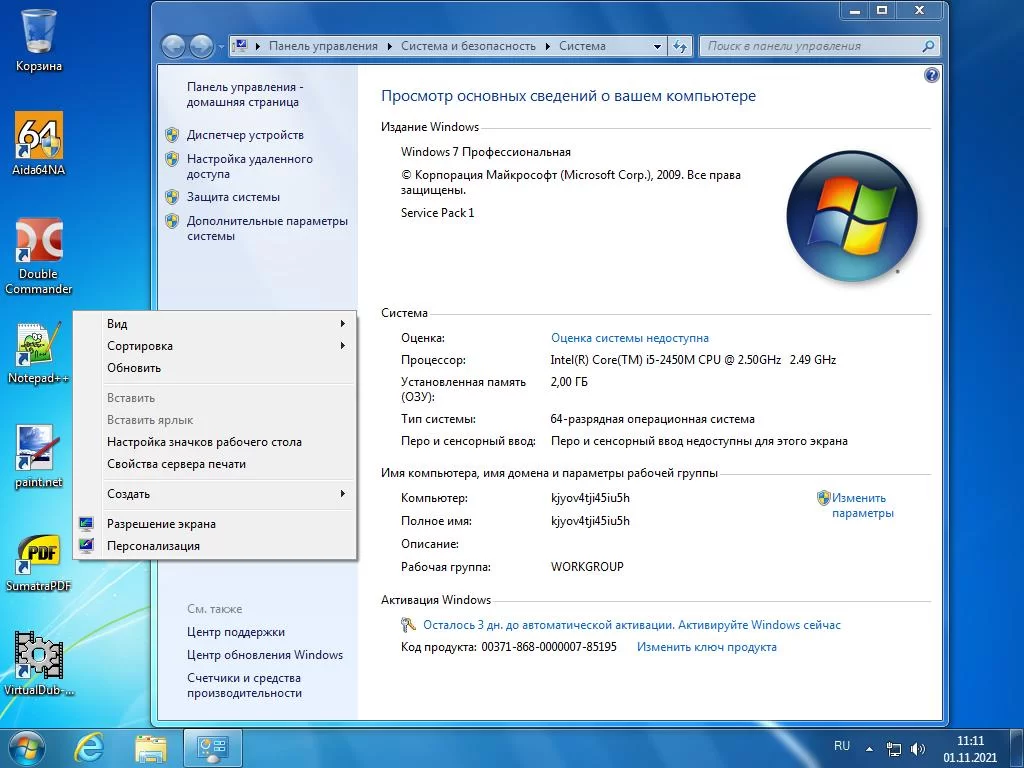 Windows 7 Service Pack 1 Professional Ru x64 with KB5006743 Ноябрь 2021