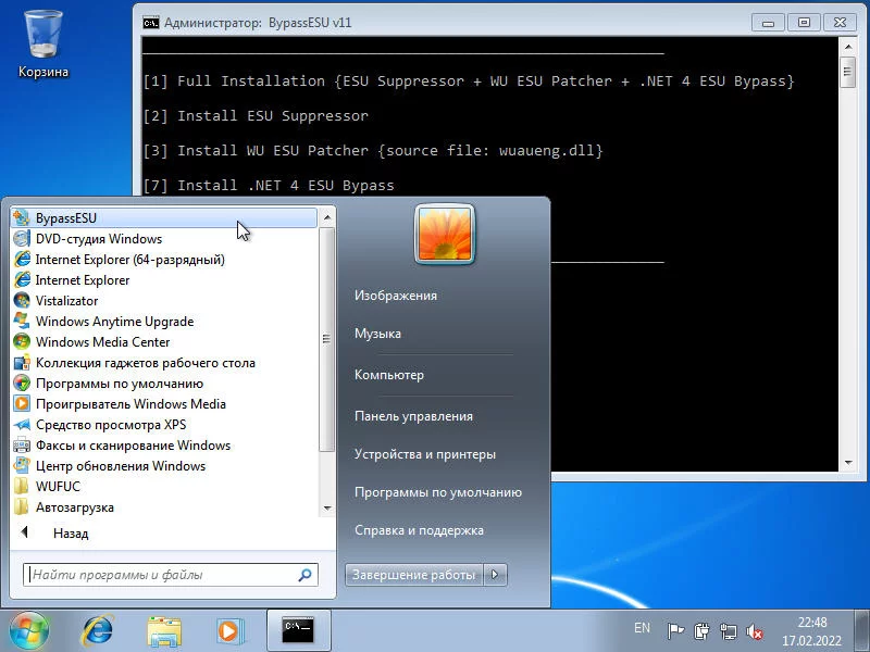 - BypassESU версии 11 для корректного функционирования утилиты BypassESU через Центр обновлений Windows.