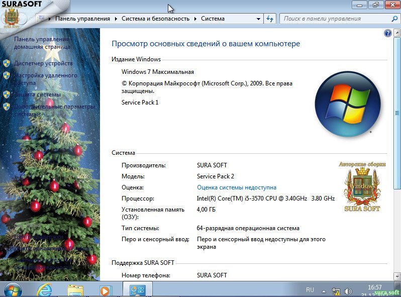 Скриншоты Windows 7 SP1 with Update SURA SOFT (x64)[31.12.2017] торрент: