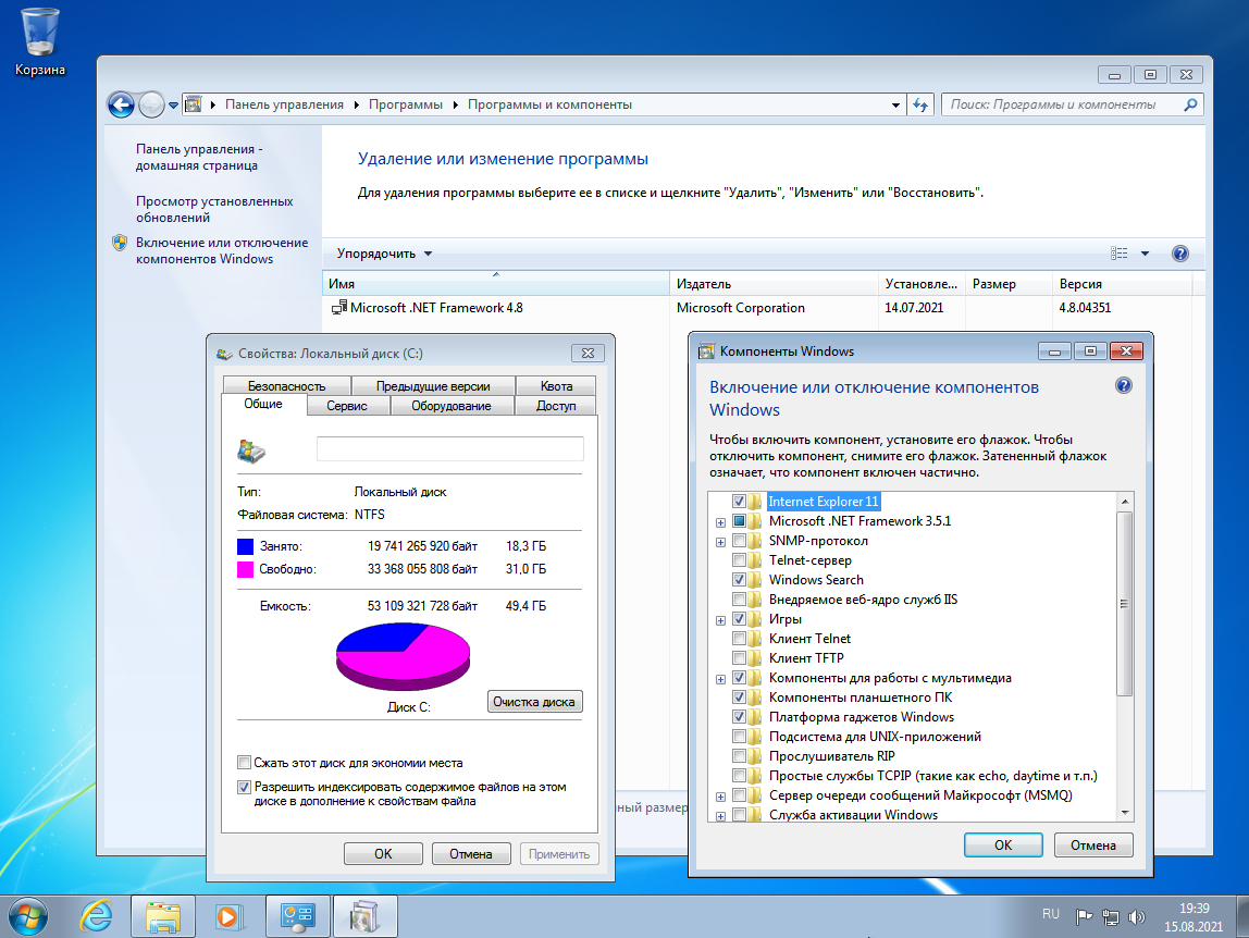 Версия оснащена интерфейсом утилит Интернет Explorer 11, .NET Framework 4.8 и системой работы конечных пользователей на языке года 2010 г., при этом обновления до июля 2021 года включены.