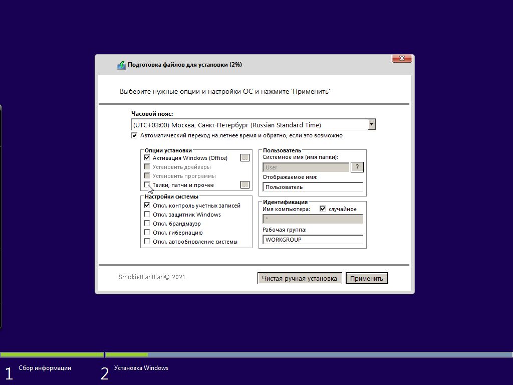 Установка только путём загрузки и переноса системы на диск или флешку (из BIOS). Обновления по сентябрю 2021 несовместимы с оборудованием нового поколения. Используется поддержка USB 3.0 и NVMe.