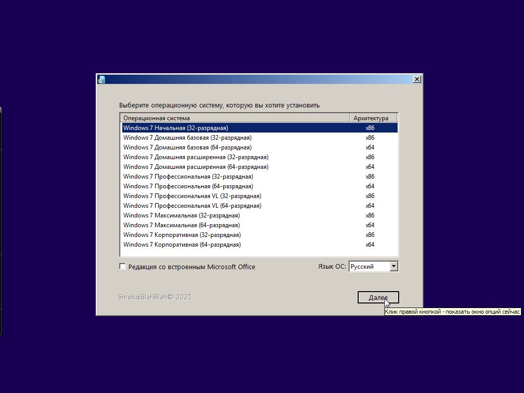Обновлено 2021.09.19: Windows 7 32-bit и 64-bit x86/x64 SP1 с интегрированными системными библиотеками, Office 2019 Pro Plus для x86 (можно выбрать по желанию), важные обновления в сентябрь, спецификации для x86/x64. Компьютер: 32-битный (x86) или 64-разрядный (x64) процессор с частотой не менее 1 ГГц; RAM 16-20 ГБ, жесткий диск 1-20 ГБ.