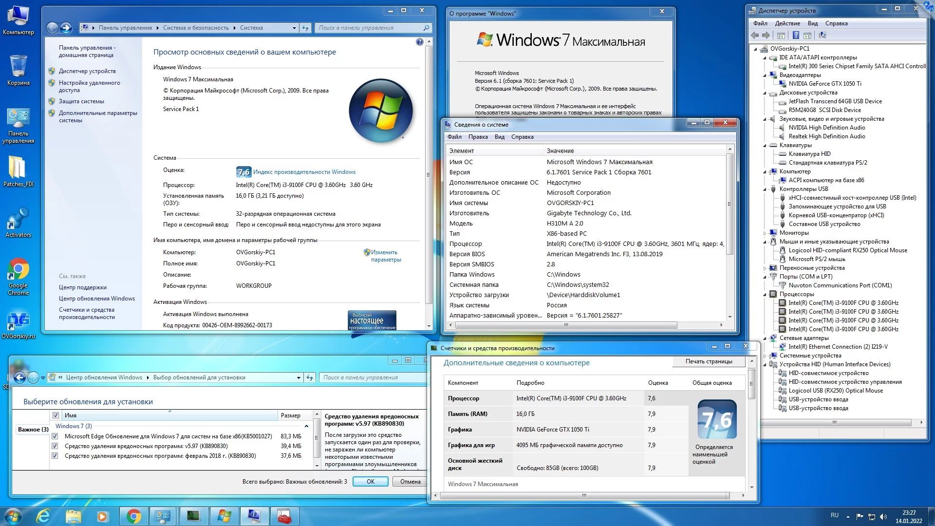 Windows 7 SP1 x86/x64 Ru 9 in 1 Update 01.2022 by OVGorskiy 1DVD