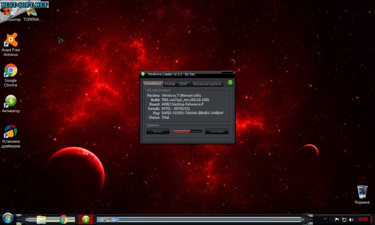 - Основа — оригинальный Windows 7 Ultimate 64-bit.